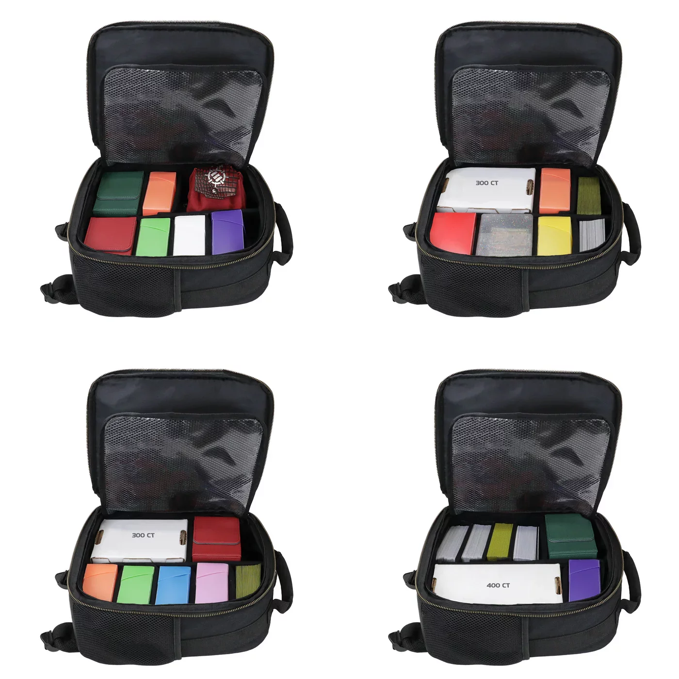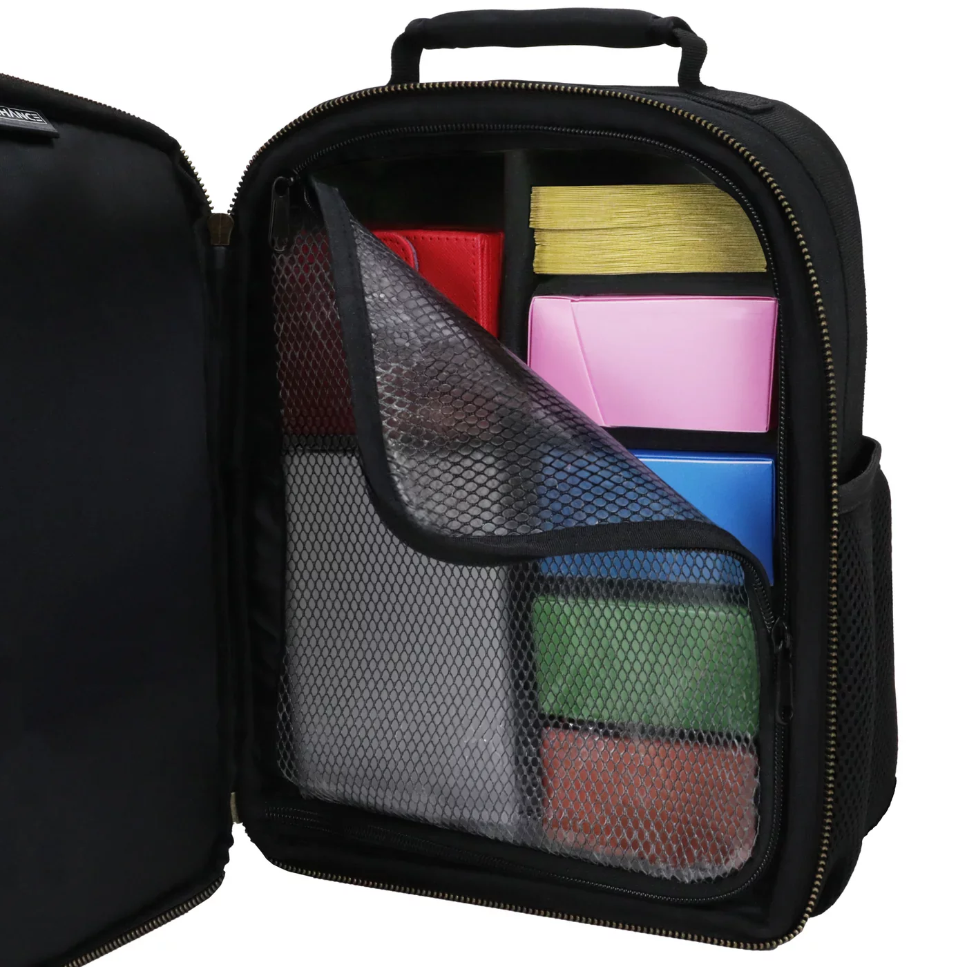 Prispôsobte si usporiadanie presne podľa svojho štýlu hrania! Tento batoh pre zberateľské kartové hry je vybavený nastaviteľnými priečkami, ktoré udržia vaše deck boxy, vrecká na kocky i ďalšie doplnky v bezpečí. Sieťovaná Card Defender Screen zabezpečí, že karty i príslušenstvo zostanú na mieste, zatiaľ čo predná kapsa ponúkne priestor pre boostery, zápisníky či žetóny. Pohodlné polstrované popruhy a bočné vrecká na podložku alebo fľašu robia z batohu ideálnu voľbu na cesty. Vďaka rozmerom hlavného priestoru 29 × 22 × 11 cm je pripravený na vaše karty i herné vybavenie.