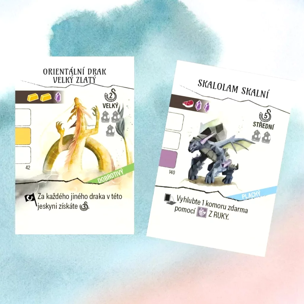 Na křídlech draků vás vezme do sveta, kde namiesto vtákov brázdia oblohu majestátni draci, a vy sa stávate ich výskumníkmi. Budujete jaskynný labyrint, lákate drakov všetkých tvarov a farieb a snažíte sa, aby práve vaša sieň bola tou najúžasnejšou v celom bratstve. Hra si zachováva pokojnú atmosféru svojho predchodcu Na křídlech, no pridáva nové nápady, krásne komponenty a skutočnú fantasy estetiku. Ideálny vianočný darček pre každého, kto má rád elegantné hry s nádherným spracovaním a kvapkou fantázie.