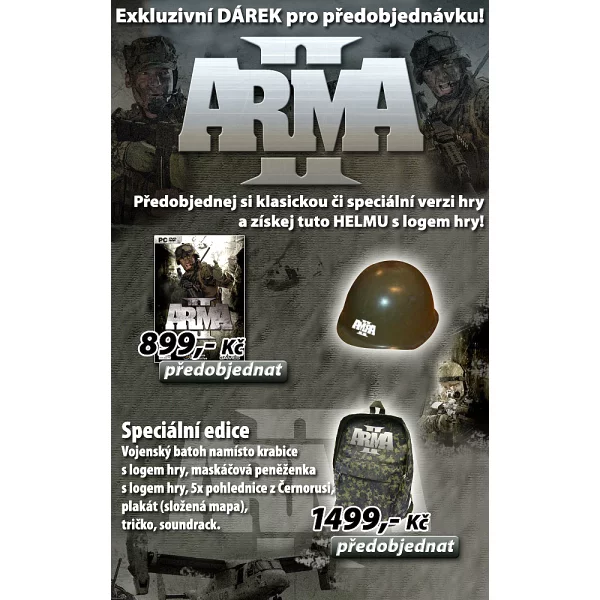 K legendárnej českej sérii Arma sme pre vás vždy pripravovali zaujímavé darčeky alebo zháňali špeciálne edície. Za nás ale jednoznačne vedie darček k druhému dielu. K jeho predobjednávke ste totiž mohli získať skutočnú vojenskú helmu s logom hry.