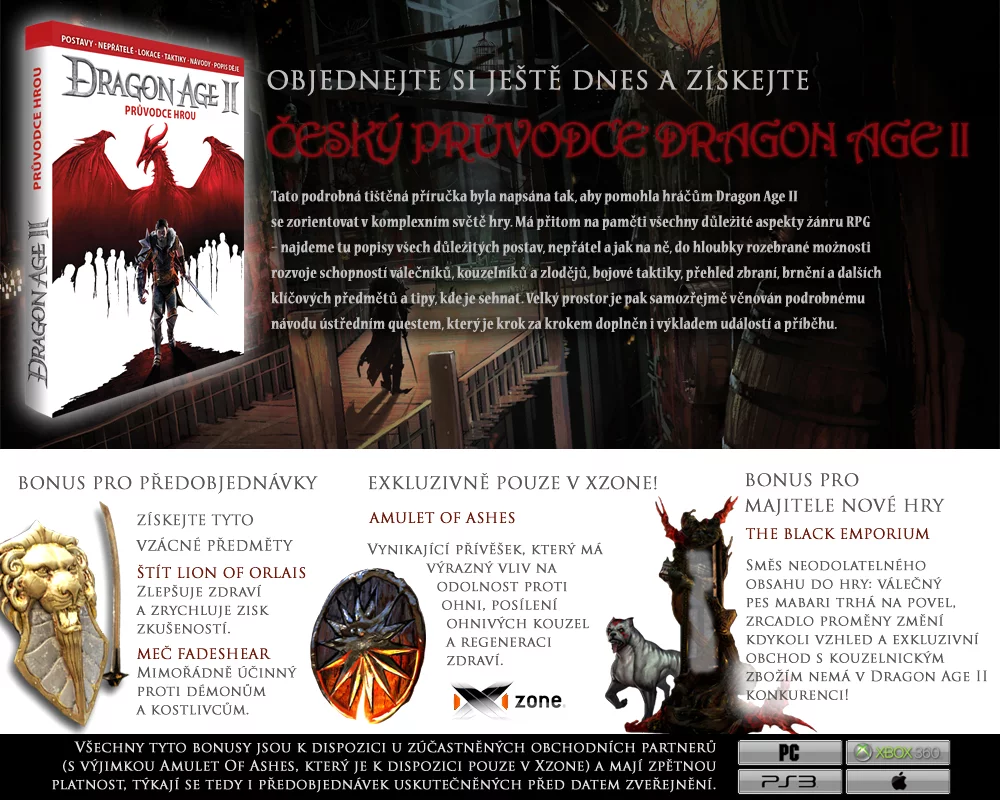 Už k prvému dielu Origins ste u nás mohli získať veľký A4 sprievodca hrou, a to komplet v češtine. Na svoju dobu bolo mať pri vydaní hry českého sprievodcu v takomto formáte niečo nevídané. A tým to nekončilo. K predobjednávke ste navyše získali aj Memory Band, prsteň z hry.