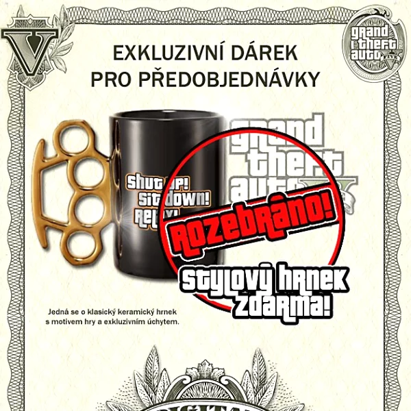 Jedna z našich najpredávanejších hier a zároveň jedna z najpredávanejších hier na svete si tu rozhodne zaslúžila svoje miesto. Ku hrám od Rockstaru bolo vždy ťažké dohodnúť akýkoľvek darček, ale aj tak sa nám podarilo vytvoriť štýlový kúsok k predobjednávke práve ku GTA V.