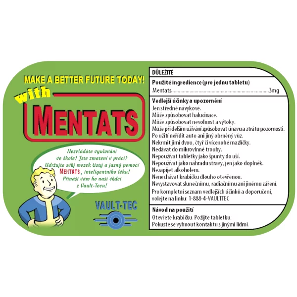 Skvelé Mentaty vám na jeseň roku 2010 pomohli nielen s testami na charizmu, ale tiež zostrili vnímanie a nabrúsili myseľ. Zrazu šli lepšie pohovory, škola aj práca. Stačila jedna alebo dve pilulky (respektíve bonbóny) a všetko bolo hneď o niečo jednoduchšie. Či už šlo o dôležitý rozhovor, vyznanie lásky, alebo bolo treba presvedčiť Legiu, že vás nemá na mieste zabiť.