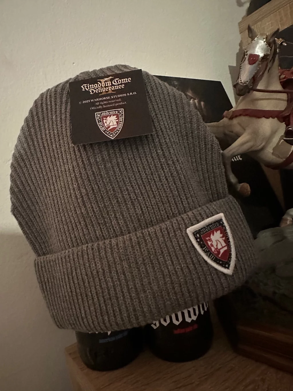 Štýlová zimná čiapka s nášivkou erbu Warhorse Studios a heslom Audentes Fortuna Iuvat zahreje nielen hlavu, ale aj srdce každého fanúšika Kingdom Come.