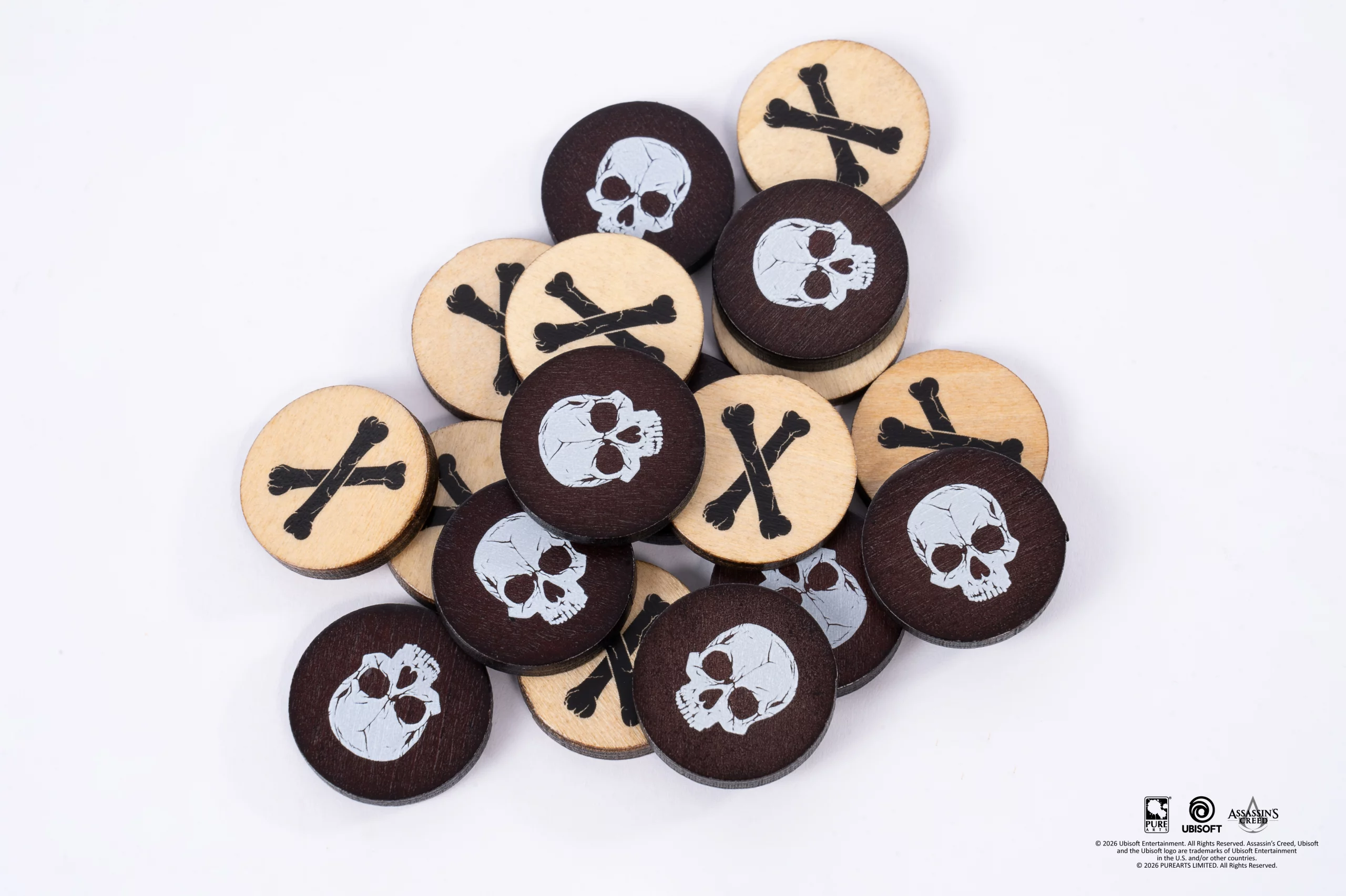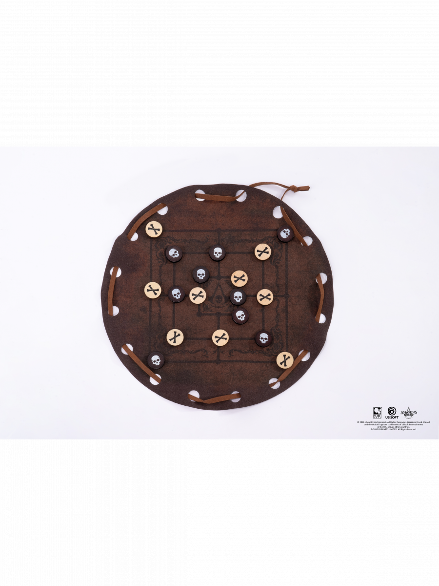 Tradičná strategická hra v pirátskom štýle Assassin Creed Black Flag. Nine Men's Morris dostáva štýlové spracovanie s koženou hernou doskou, drevenými žetónmi a ikonickými motívmi lebiek a skrížených kostí.
