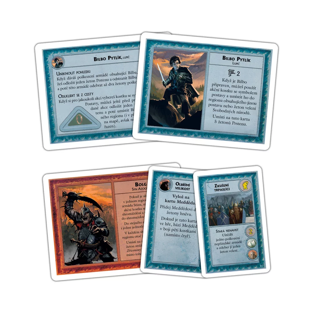 - 92 kariet (30 kariet udalostí, 20 kariet príbehu pre hráča za Tieňa, 20 kariet príbehu pre hráča za Slobodné národy, 9 kariet osudu a 13 kariet jednotiek a manévrovania)