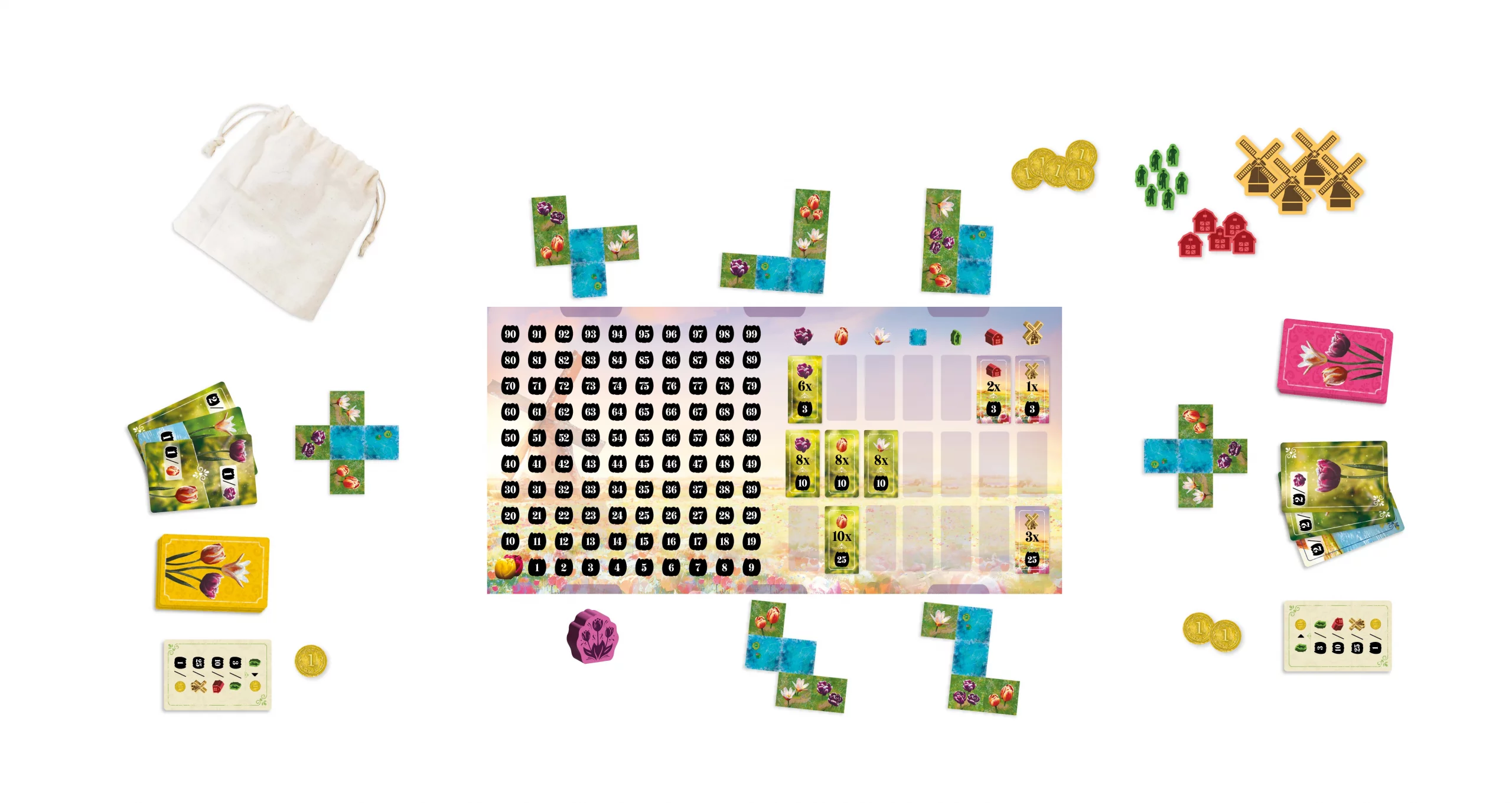 V hre Třpytivé květy hráči počas 10 kôl súťažia o vytvorenie najhodnotnejšej tulipánovej záhrady. Vo svojom kole si vyberiete dielik krajiny, pridáte ho do svojej záhrady a zahráte z ruky kartu, ktorá vám prinesie víťazné body v závislosti od umiestneného dielika. Šikovným umiestňovaním dielikov vytvorte oblasti na umiestnenie pracovníkov, stodôl a veterných mlynov. Tí vám spolu s úlohami, ktoré splníte počas hry, prinesú pri záverečnom bodovaní ďalšie body navyše. Hráč, ktorý nazbiera najviac bodov, zvíťazí.OBSAH BALENIA