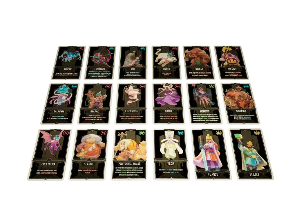 Zostav tím jedinečných postáv a poraz svojho súpera! Vyhráš, ak sa ti podarí postaviť dve svoje postavy vedľa protivníkovho vládcu, t. j. zajať ho, alebo ak prefíkane obkľúčiš protivníkovho vládcu tak, aby okolo neho nezostalo žiadne voľné políčko.OBSAH BALENIA
