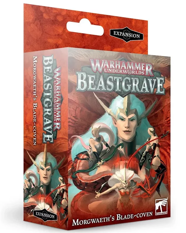 Rozšírenie pre stolovú hru Warhammer Underworlds prináša novú partiu do hry. V balení nájdeme 5 modelov predstavujúce desivé Morgwaeth's Blade-Coven a hracie karty špecifické pre túto sadu: 5 skladacích figúrok - Morgwaeth the Bloodied, Kýra, Khamyss, Kyrssa a Lethyr spolu s ich fighter kartami, 12 Objective kariet, 10 Upgrade a 10 kariet ploy pre Morgwaeth 's Blade-Coven, 9 univerzálnych objective kariet a 18 univerzálnych power kariet.