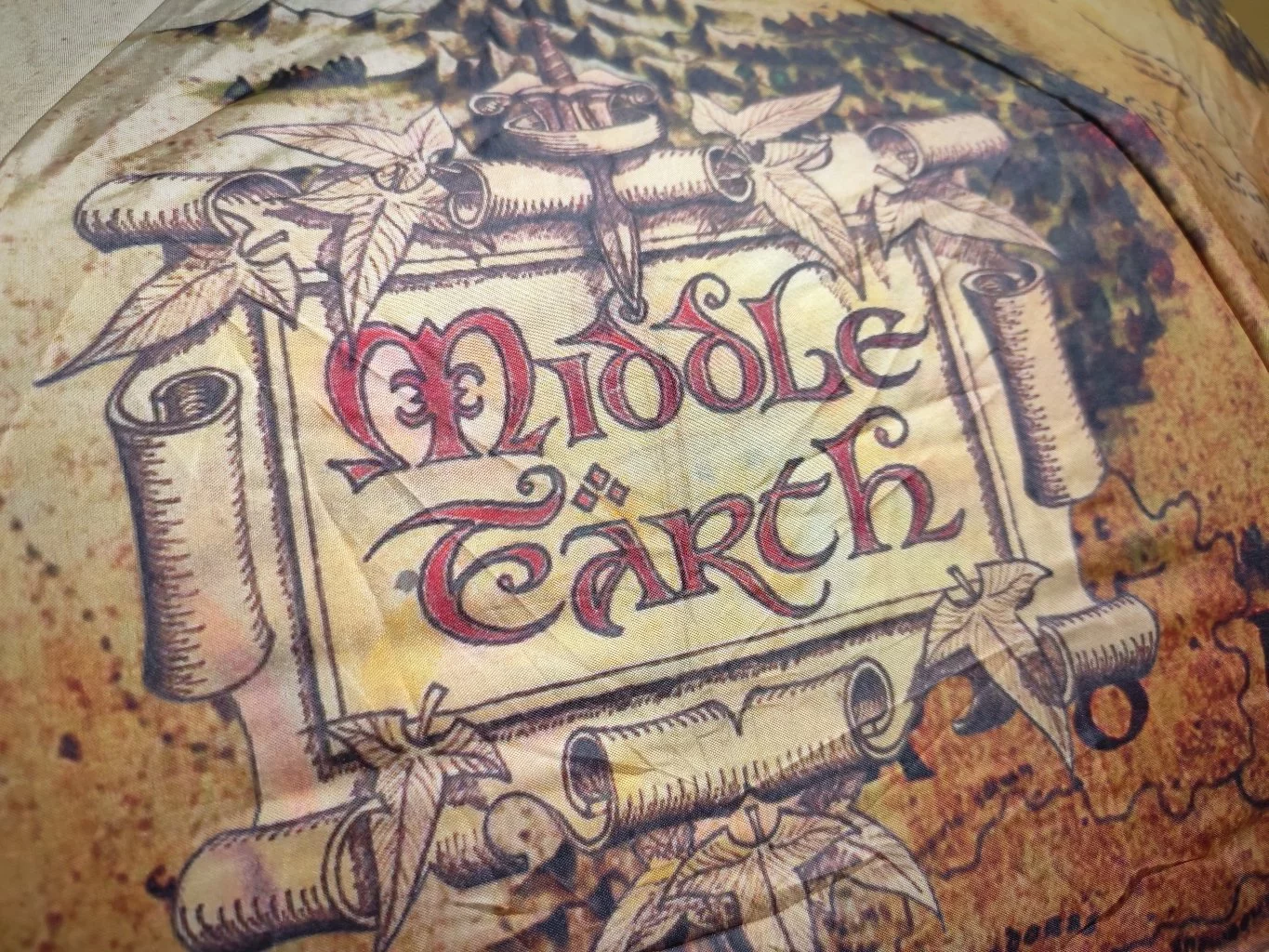Slušně zpracovaný vystřelovací deštník s motivem mapy Středozemě. Snad bude dobře a dlouho sloužit.
