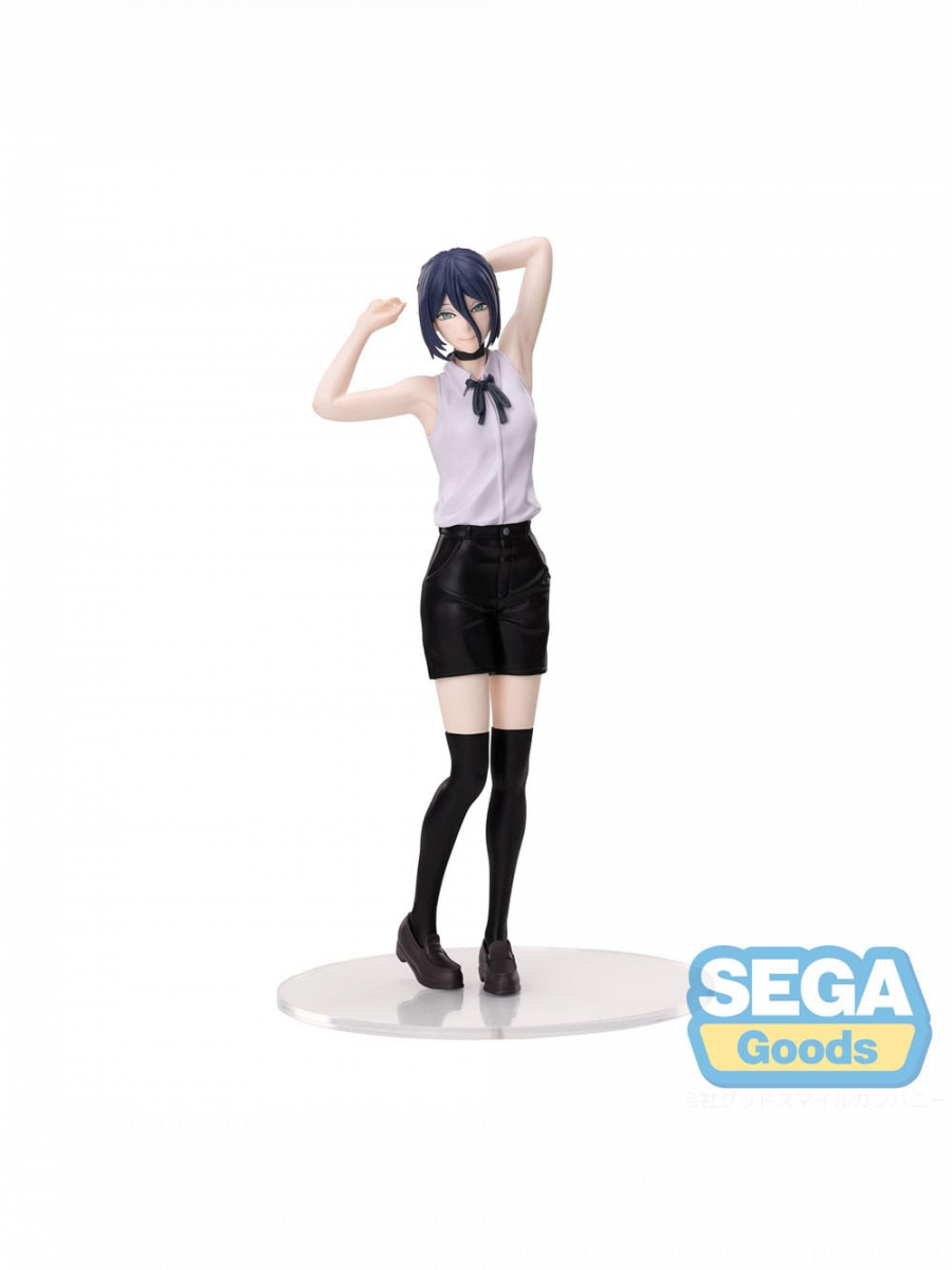 Reze z Chainsaw Man prichádza ako elegantná figúrka od Segy. V jednoduchom outfite s šortkami a podkolienkami pôsobí nevinne a pokojne – ale fanúšikovia dobre vedia, že za jej úsmevom sa skrýva nebezpečenstvo.Materiál: PVC