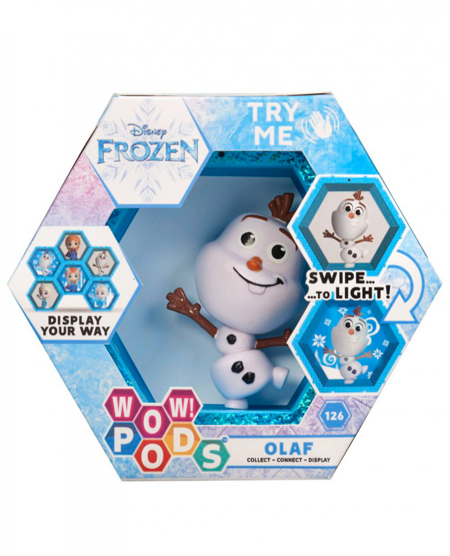 WOW! PODS je zberateľská sada figúrok umiestnených v šesťhrannom pode. Pozbierajte všetkých svojich obľúbených hrdinov a hrdinky a jednoduchým zacvaknutím spojte pody do seba. Spájaním potom môžete tvoriť rôzne tvary a dať vzniknúť skutočne jedinečnej dekorácii. Pohybom pred figúrkou sa navyše celý pod rozsvieti. Tentokrát sa predstaví Olaf z Disney rozprávky Ľadové kráľovstvo (Frozen). Napájanie je riešené pomocou batérií, ktoré sú súčasťou balenia.Veľkosť: 15 x 5,3 x 15 cm