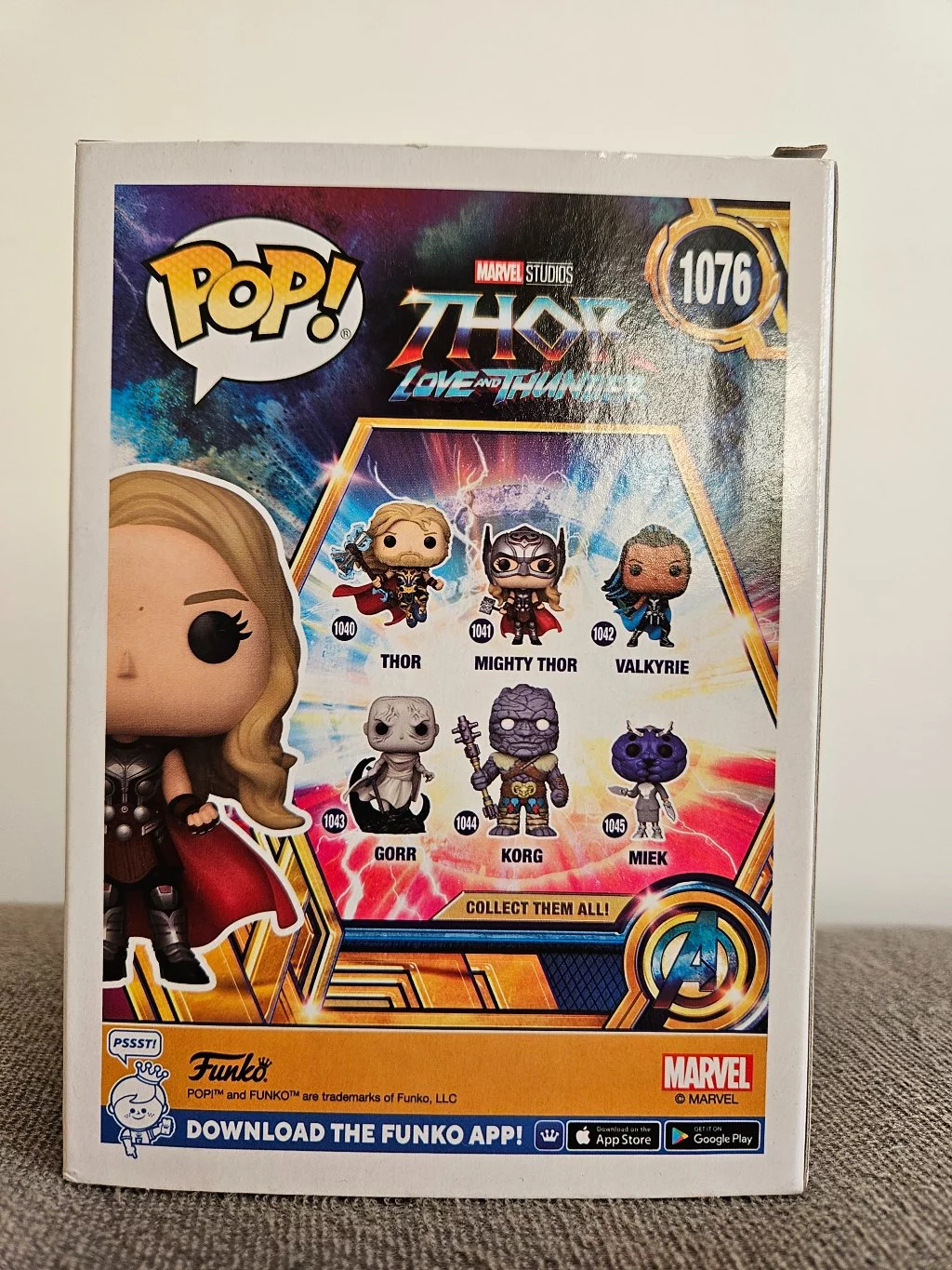 Ďalší prírastok do Marvel Cinematic Universe v podobe filmu Thor: Love and Thunder (Thor: Láska ako hrom) sa dočkáva svojich elektrizujúcich vinylových figúrok POP! od spoločnosti Funko! Vo filme sa objaví aj Mighty Thor (Jane Foster), ktorú hrá Natalie Portman! Špeciálna verzia figúrky.Veľkosť: cca 9 cm
