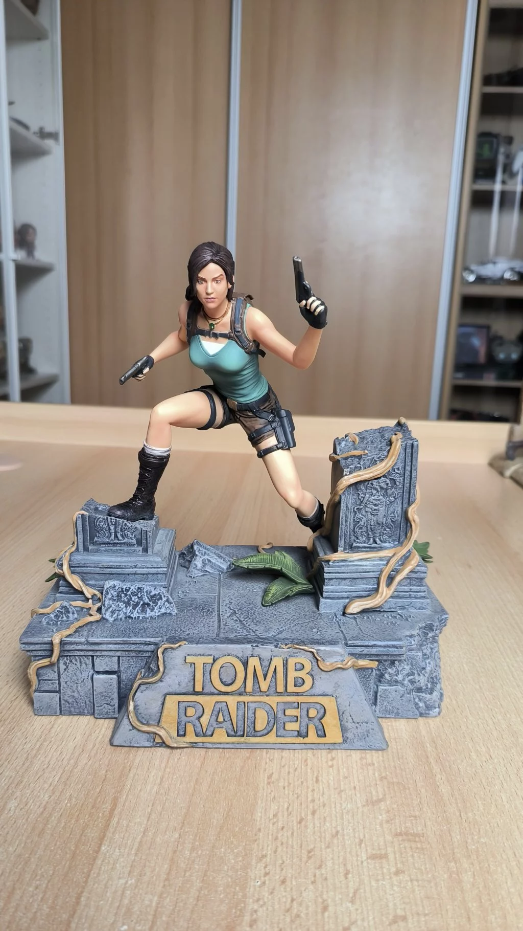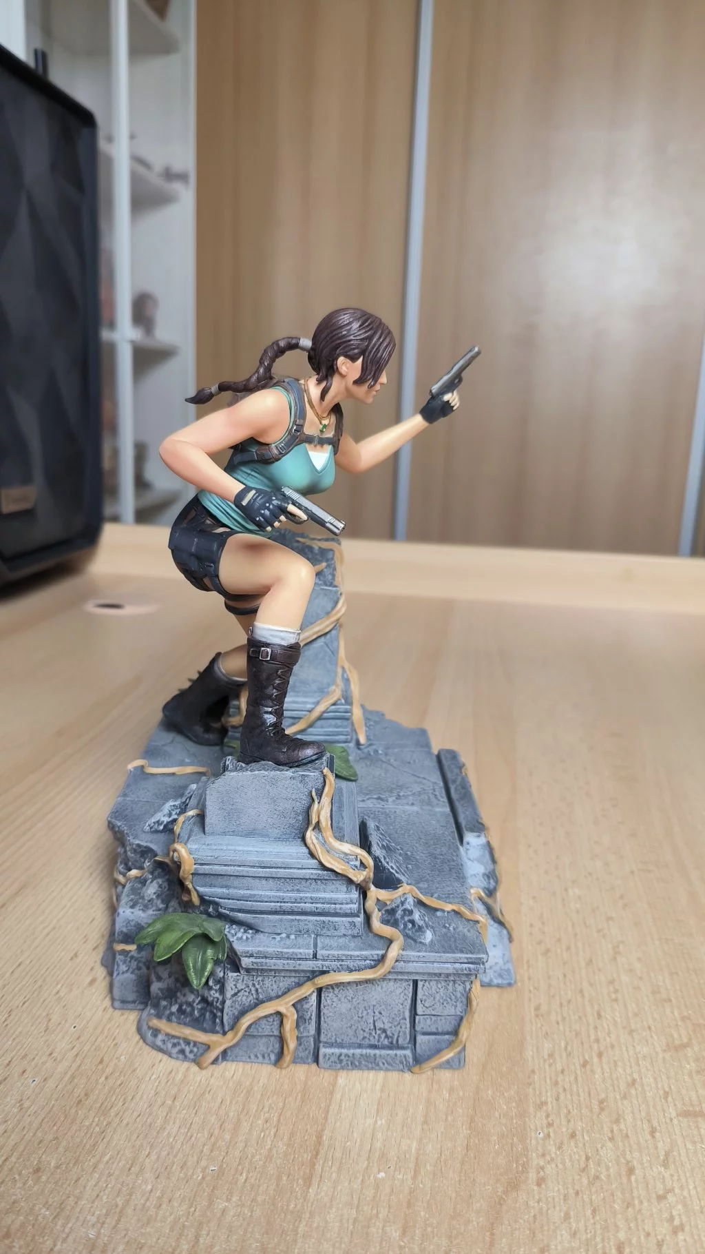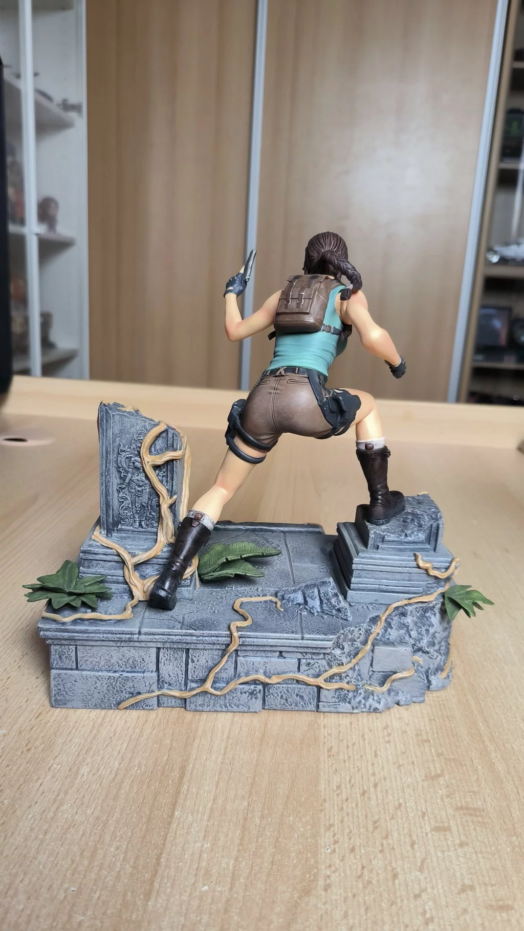 Táto starostlivo spracovaná soška, ktorá sa nachádza uprostred ruín starobylej džungle, zachytáva Laru s neľútostným odhodlaním a charakterom.