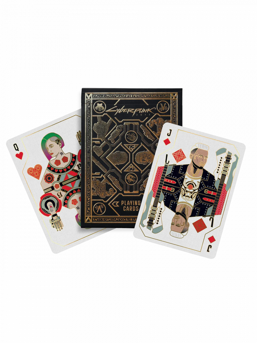 Každá karta je zdobená originálnymi ilustráciami postáv, zbraní a symbolov z Cyberpunku 2077. Elegantné balenie s metalickým zlatým zdobením robí z tohto balíčka nielen skvelú voľbu pre kartové hry, ale aj štýlový zberateľský kúsok pre fanúšikov Night City.