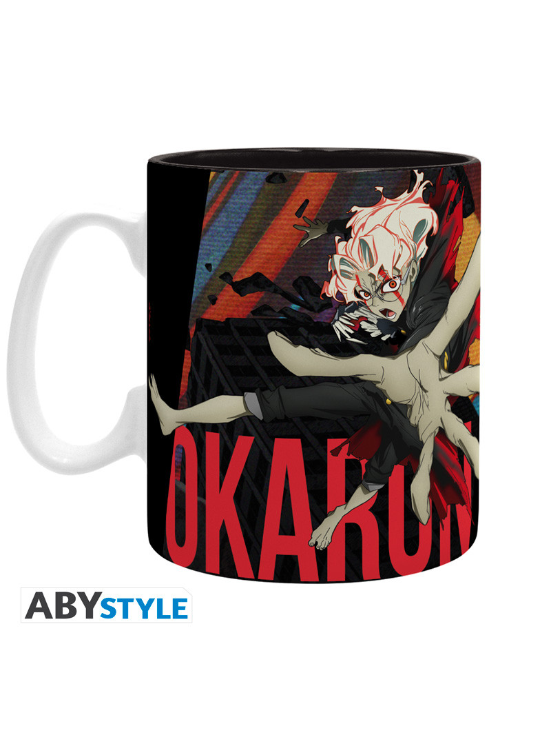 Štýlový hrnček pre fanúšikov série Dandadan, ktorý zachytáva energiu a chaos dua Momo a Okaruna.