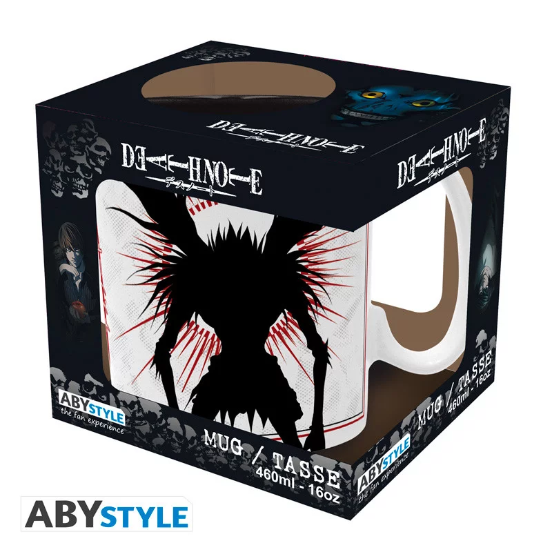 Vstúpte do temného sveta Death Note s týmto jedinečným hrnčekom, ktorý zachytáva ikonické siluety Lighta a Shinigamiho Ryuka. Štýlový kontrast čiernej a červenej na bielom pozadí dodáva hrnčeku atmosféru, ktorá osloví všetkých fanúšikov tejto legendárnej série.
