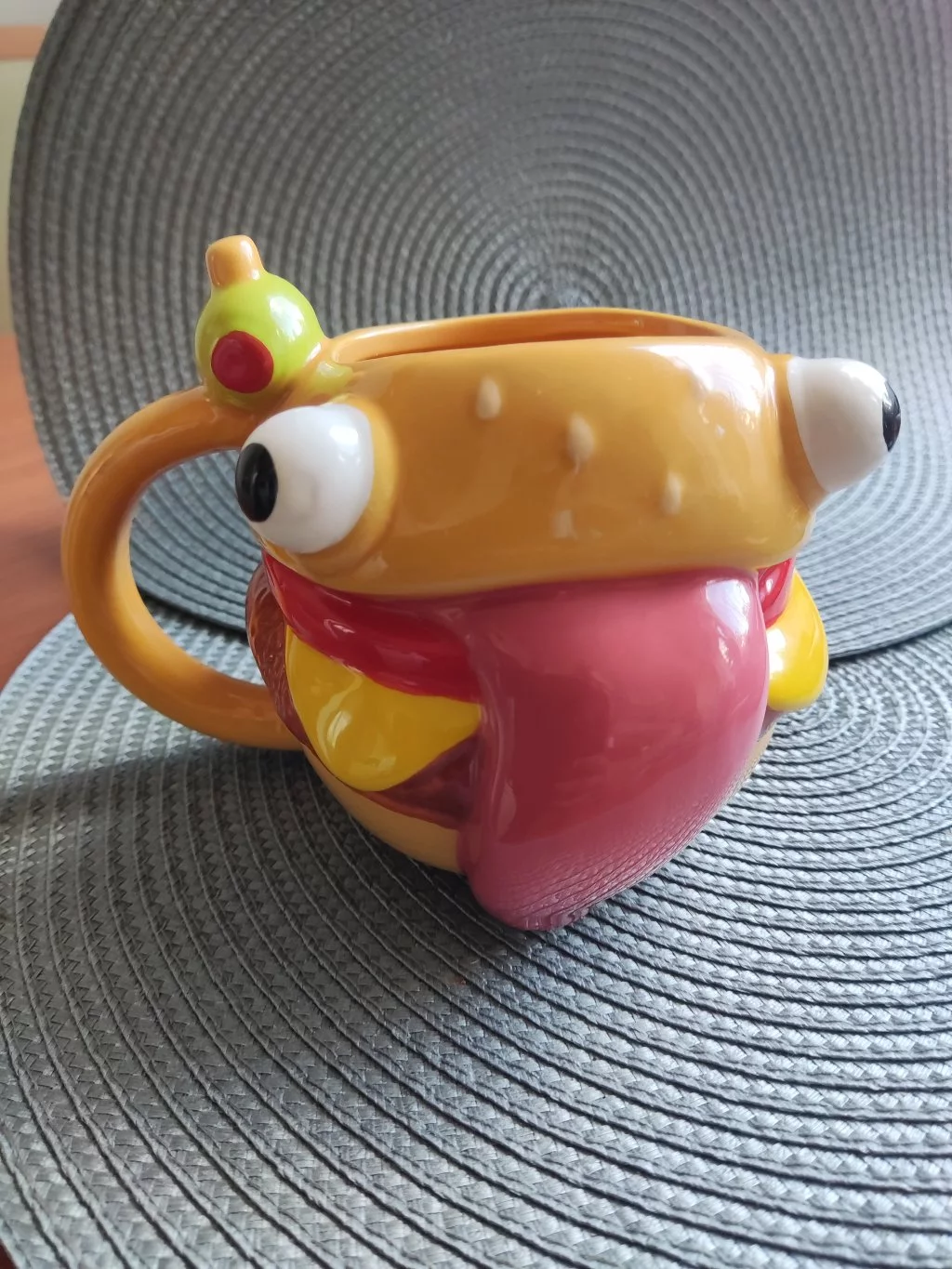 Začni deň v štýle Fortnite s hrnčekom Durrr Burger! Vďaka detailom ako je typická olivka na špáradle dodá tvojej pauze na kávu originálny a zábavný nádych.Objem: cca 450 ml