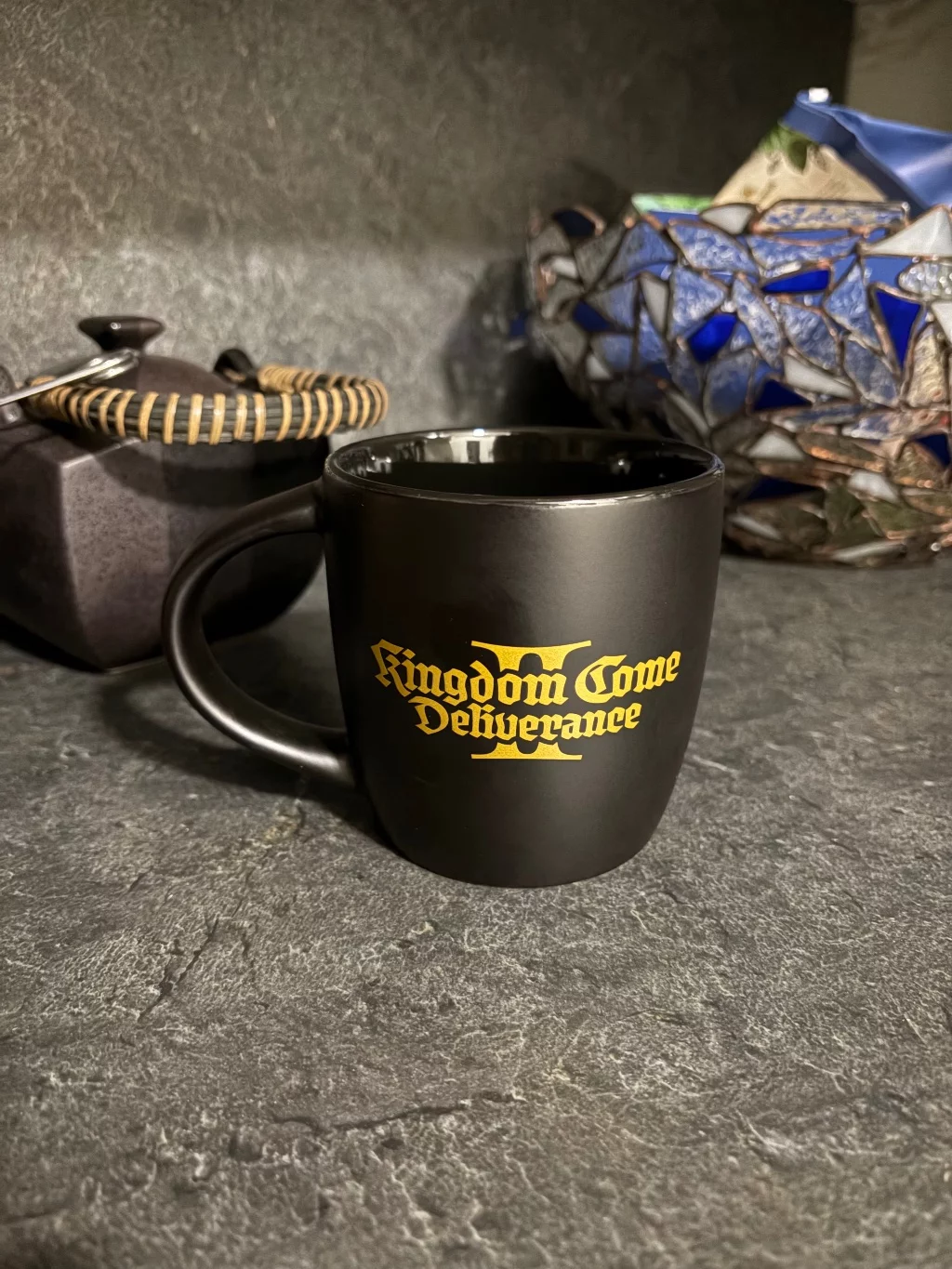 Štýlový hrnček s logom dlho očakávanej českej stredovekej videohry Kingdom Come: Deliverance II od Warhorse Studios. Hrnček zdobí symbol KCD II v žiarivej zlatej farbe, ktorý dopĺňa názov hry.