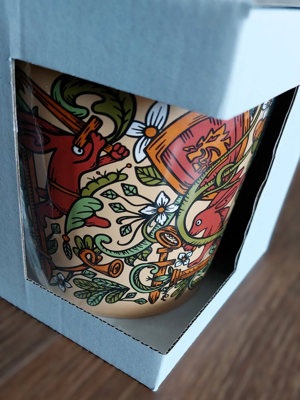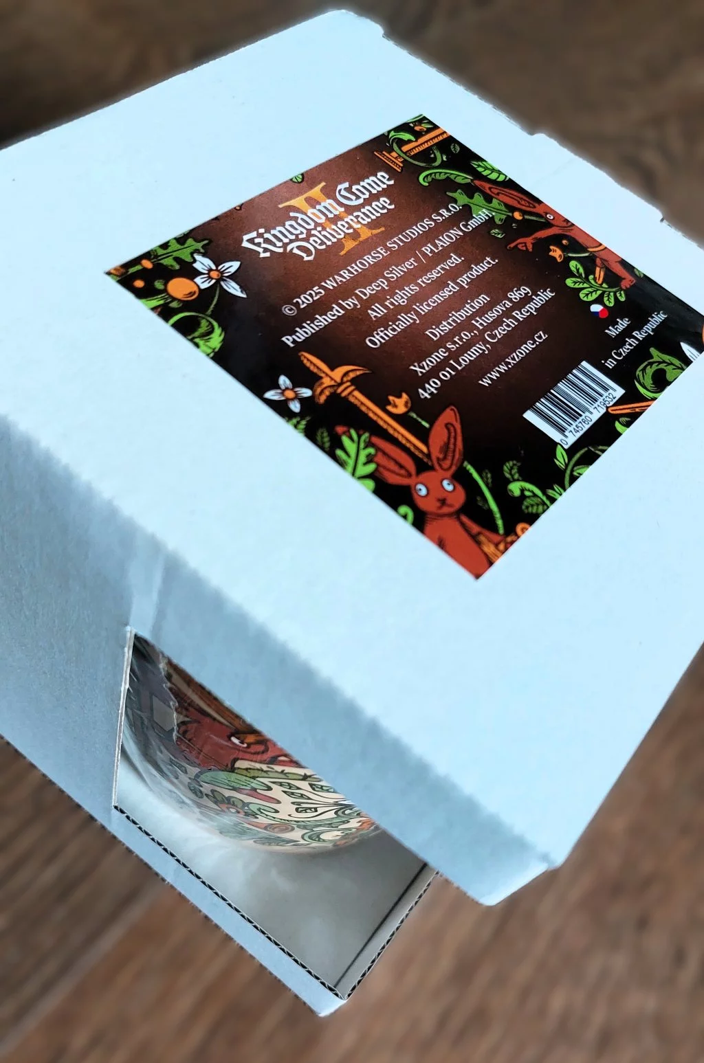 Roztomilí, ale ozbrojení. Obľúbení zajaci ukrytí v rozkvitnutom hvozde dohliadnu na to, aby váš nápoj nebol ukradnutý žiadnym lotrom. Veľký keramický hrnček s objemom 500 ml pojme poriadnu porciu čaju aj kávového odvaru proti vyčerpaniu. Na dne potom nájdete oficiálne logo Kingdom Come: Deliverance II.