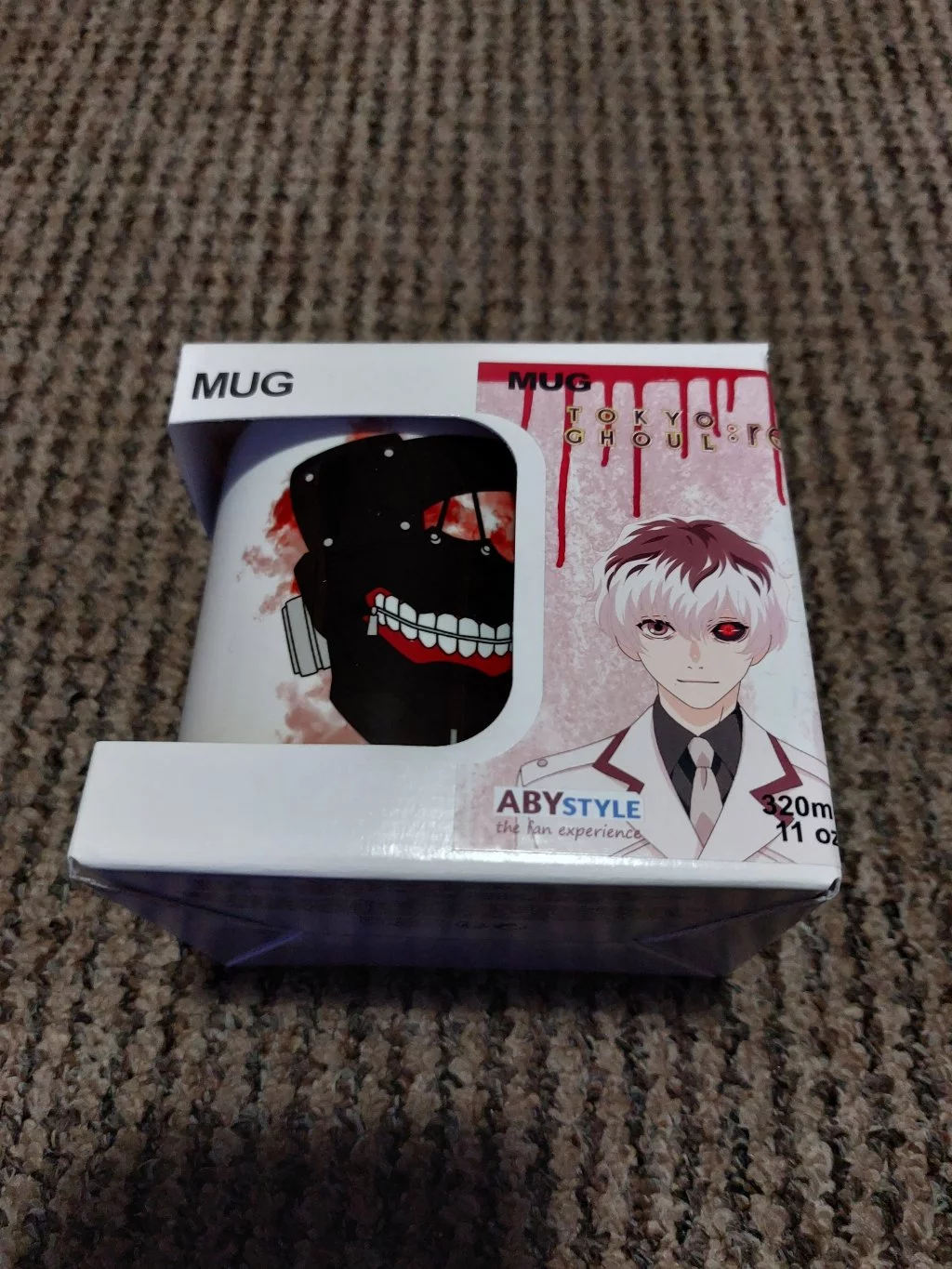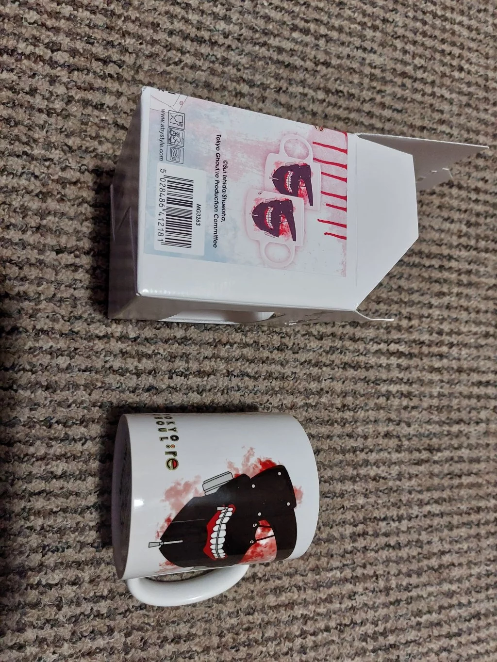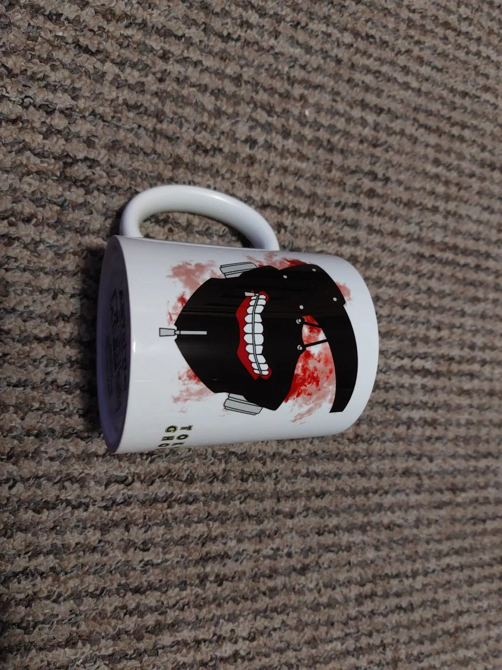 Tento hrnek s vyobrazením masky Ghoula s označením Gantai nebo také Kaneki Ken se hodí na minimální denní dávku kávy pro přežití každého ghoula bez požití masa.