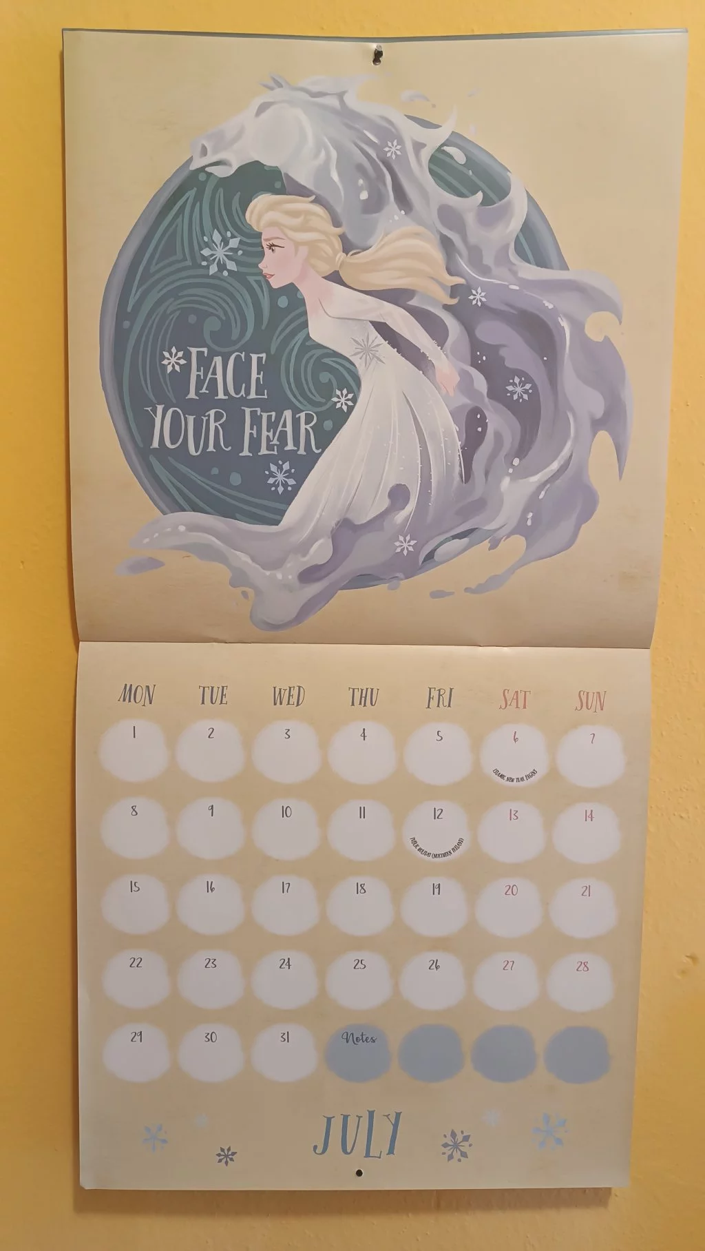 Pěkný kalendář plný obrázků z Ledového království. Dcerkám se moc líbí.
