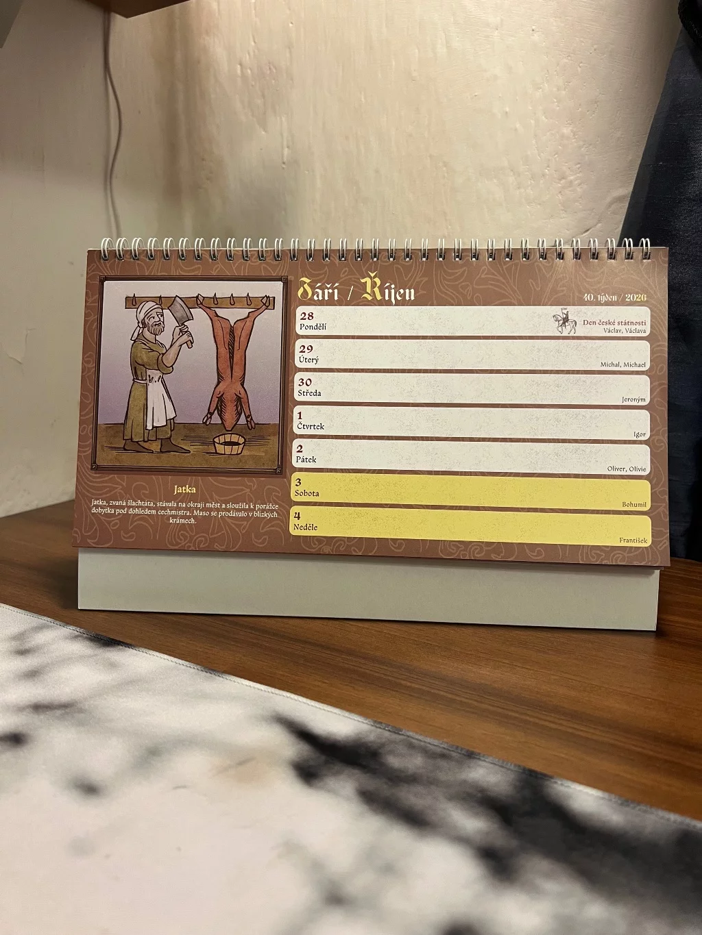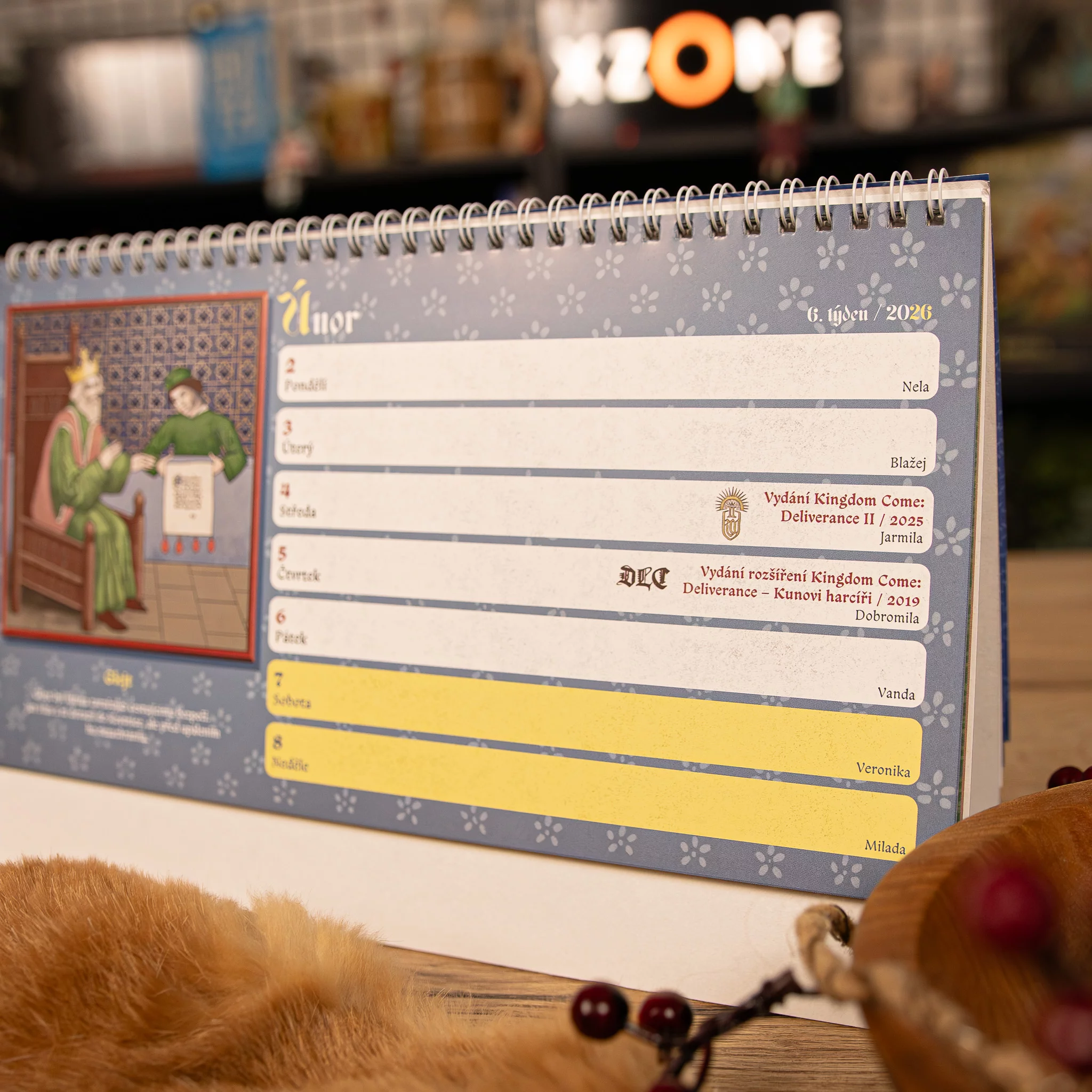 Prežite rok 2026 v stredovekom rytme s oficiálnym stolovým kalendárom Kingdom Come: Deliverance II. Každý týždeň sprevádza ilustrácia z herného kodexu a dozviete sa tak vždy nejakú zaujímavosť, od bitiek a táborového života až po sviatky a zvyky vtedajších Čechov.