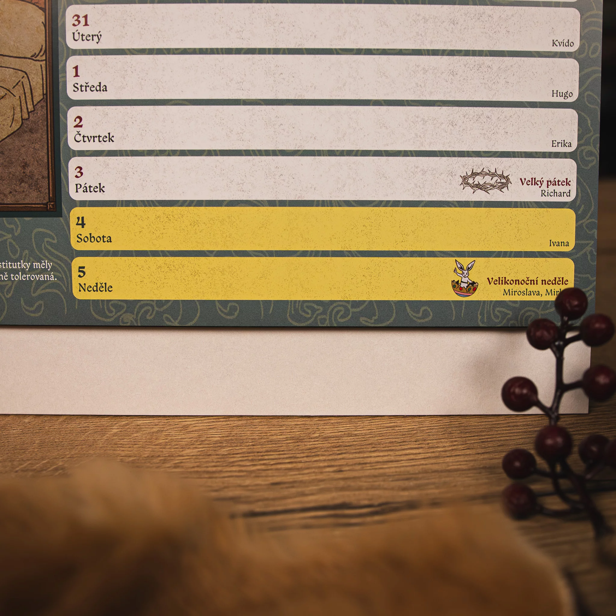 Nádherný kalendář, krásně zpracovaný i popsaný s událostmi ohledně série KCD, už se těším na rok 2026 aby se popisoval