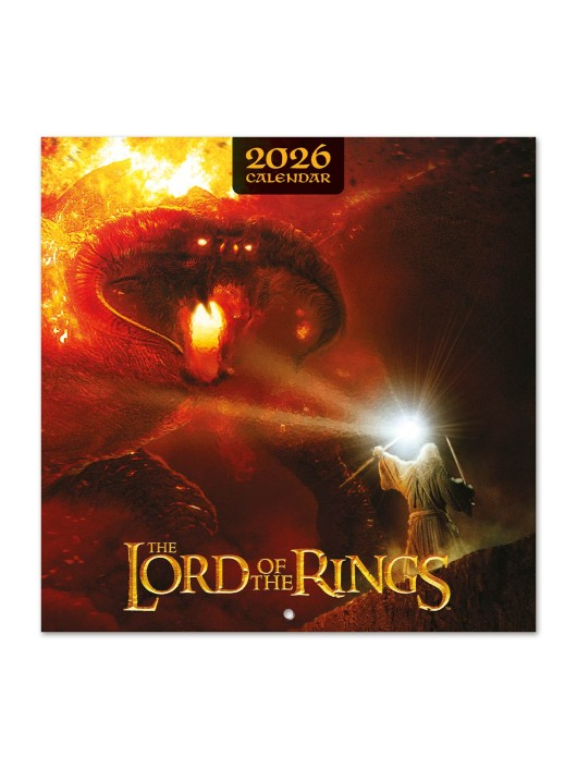 Štvorcový kalendár The Lord of the Rings 2026. Každý mesiac zobrazuje obrázky postáv a poskytuje dostatok priestoru na zapísanie všetkých dôležitých dát do veľkých dátových polí.