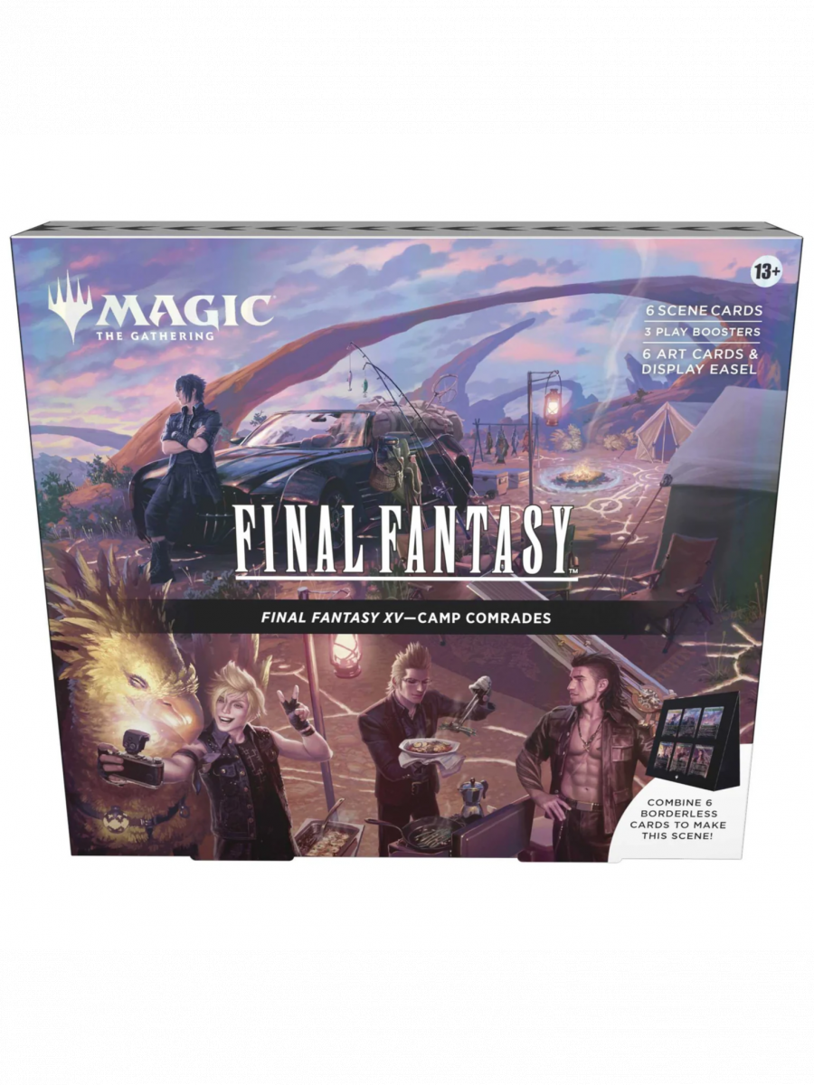 Zastav sa pri táboráku s partiou z Final Fantasy XV! Camp Comrades Scene Box zachytáva ikonický moment priateľstva Noctisa, Prompta, Ignisa a Gladiola v nádhernom umeleckom spracovaní pre Magic: The Gathering.