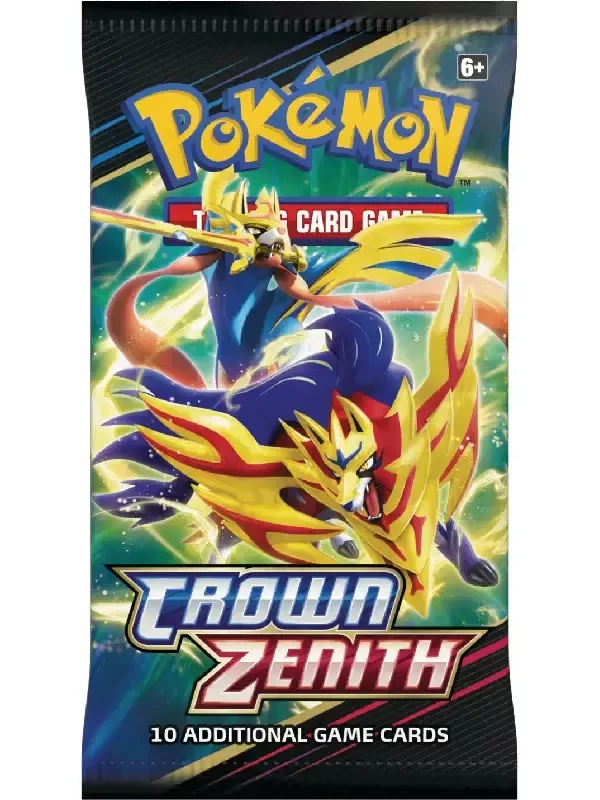 Booster s motívom rozšírenia Crown Zenith pre kartovú hru Pokémon TCG. Booster obsahuje 10 náhodných kariet.