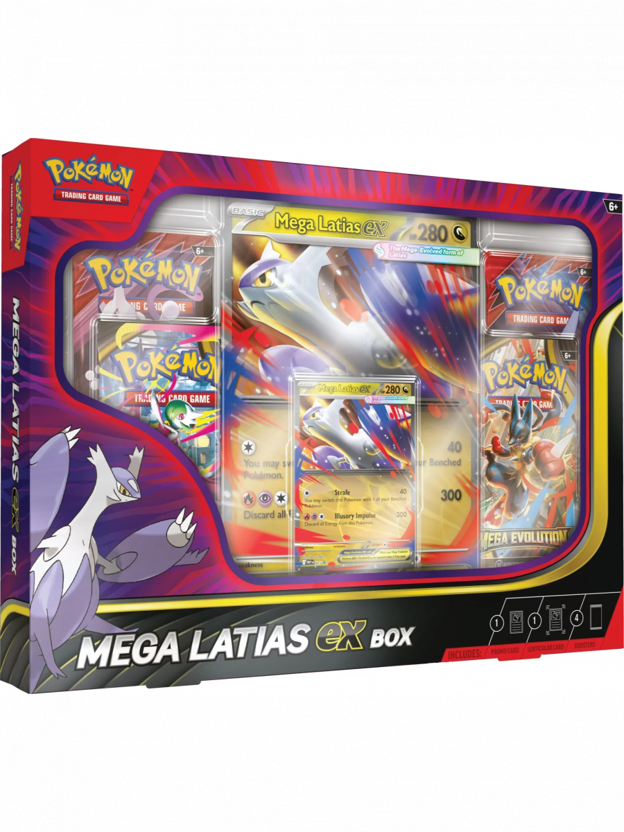 Pripravte sa na silu Mega evolúcie s Pokémon TCG: ex Box – Mega Latias! Tento špeciálny set prináša promo kartu Mega Latias EX, doplnkové boostre a všetko, čo potrebujete na posilnenie svojho balíčka.
