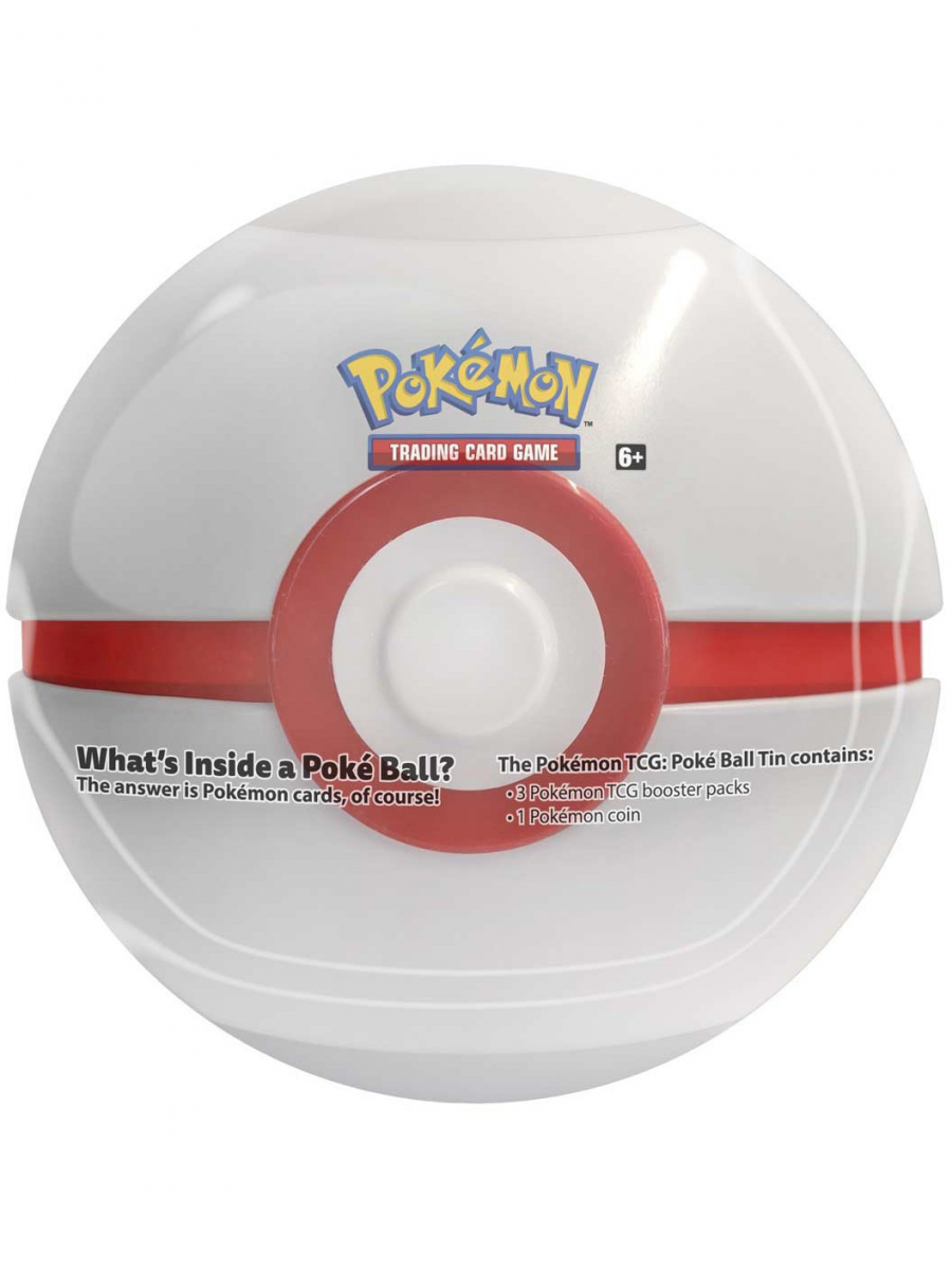 Nová zberateľská plechovka Pokémon Trading Card Game s tromi booster balíčky (každý s 10 kartami) a novú mincí pre prvý kvartál 2021. Táto je v tvare Premier Ballu.