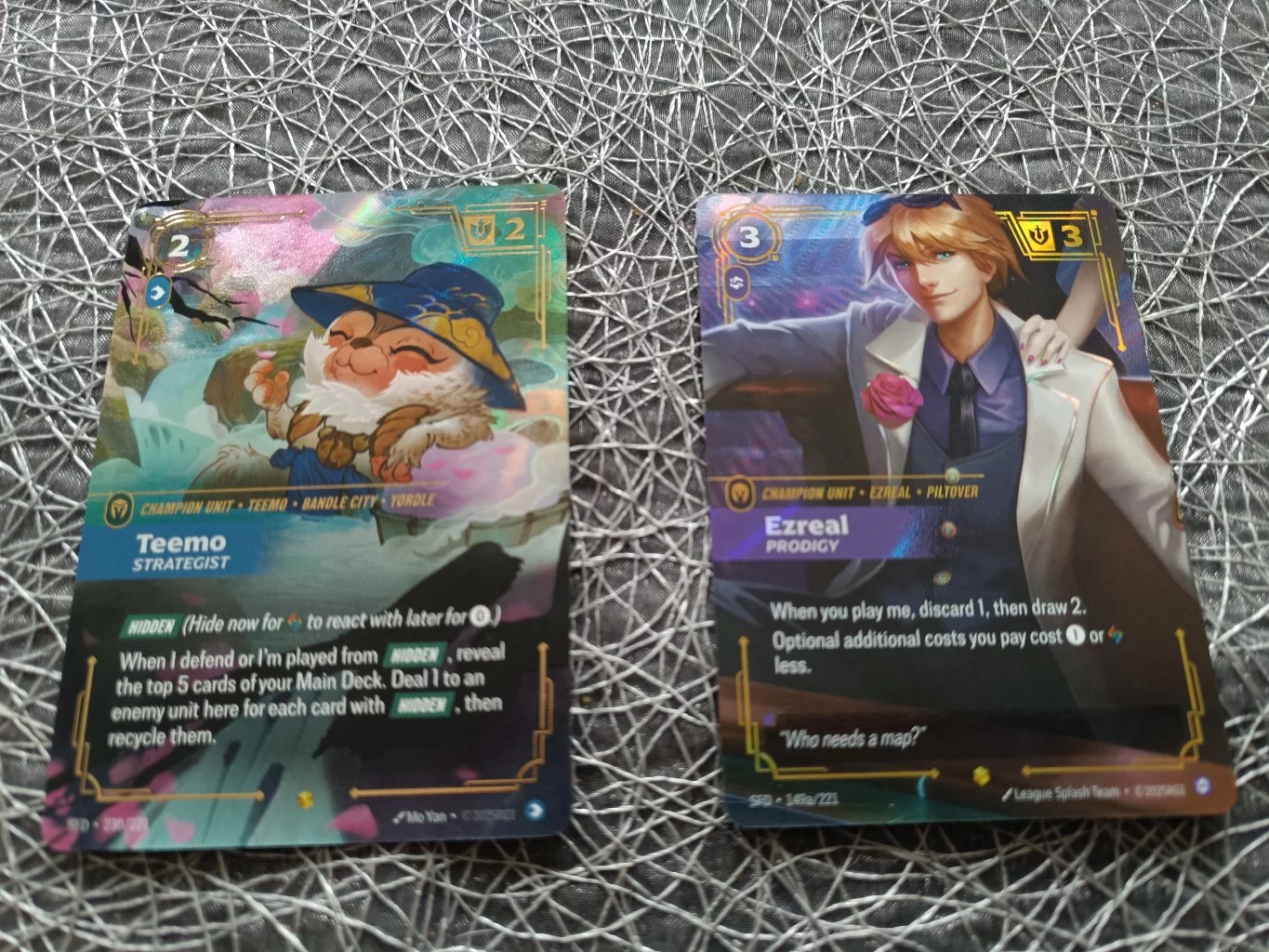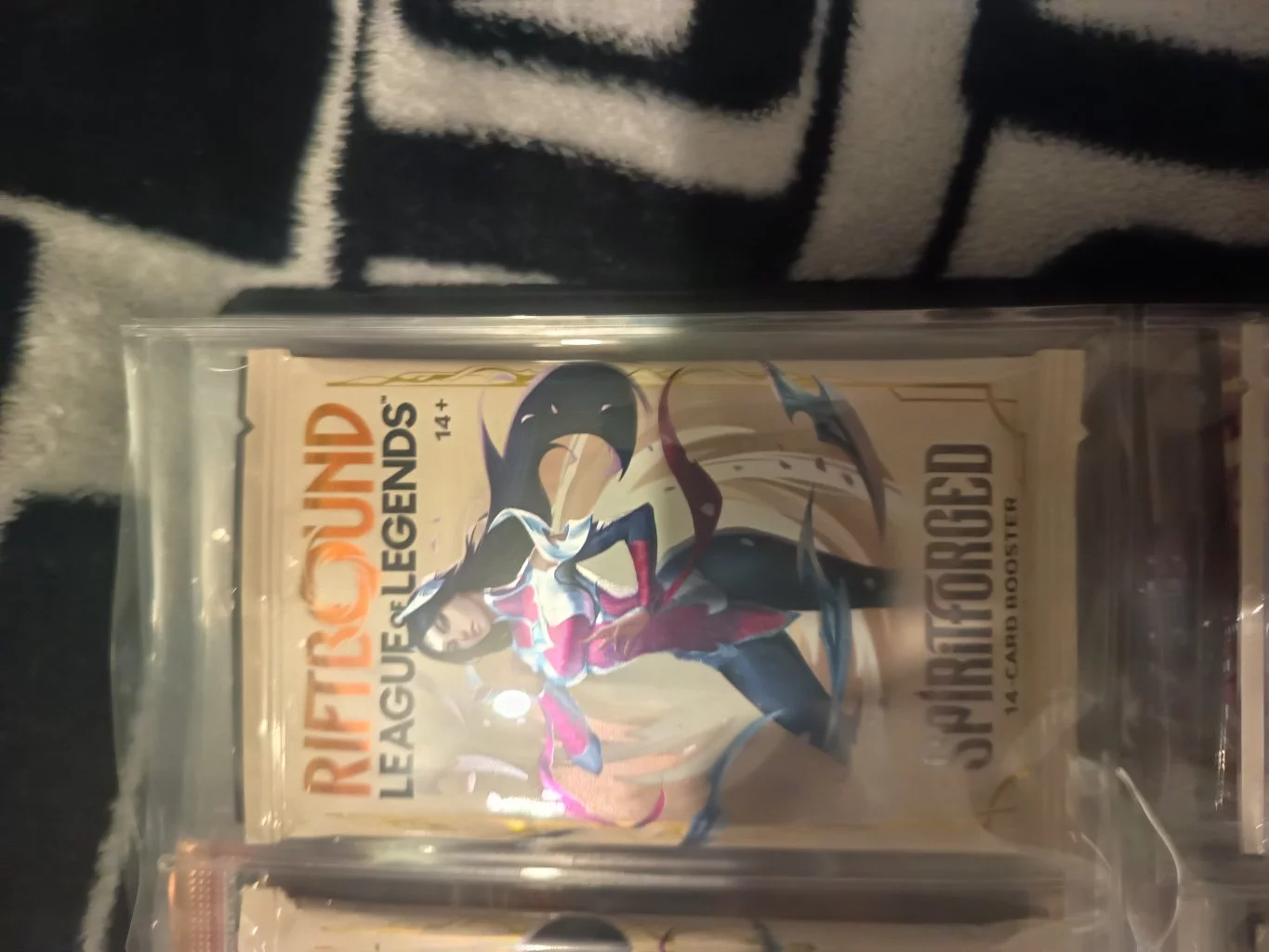 Booster z hry Riftbound: League od Legends. Každý booster obsahuje 14 rôznych kariet s ikonickými artworkami sveta League of Legends