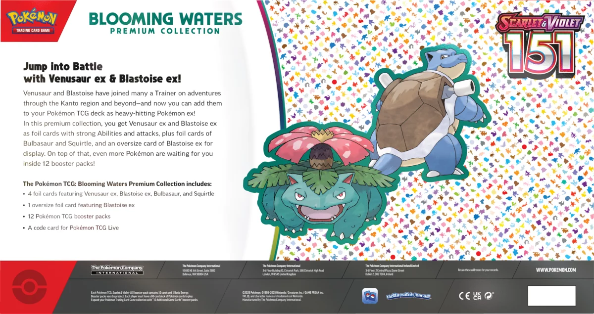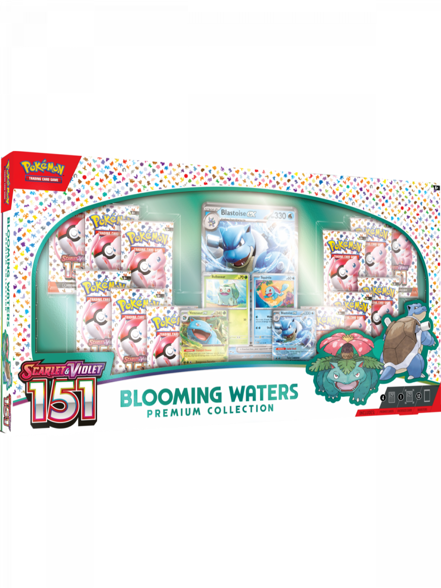 Prémiová kolekcia Pokémon TCG: Scarlet & Violet – Blooming Waters poteší zberateľov i hráčov elegantným vodným motívom a silnými kartami. Obsahuje špeciálne foilové promo karty, boostery a exkluzívne doplnky, vďaka ktorým rozkvitne každá zbierka i balíček novou taktickou energiou.