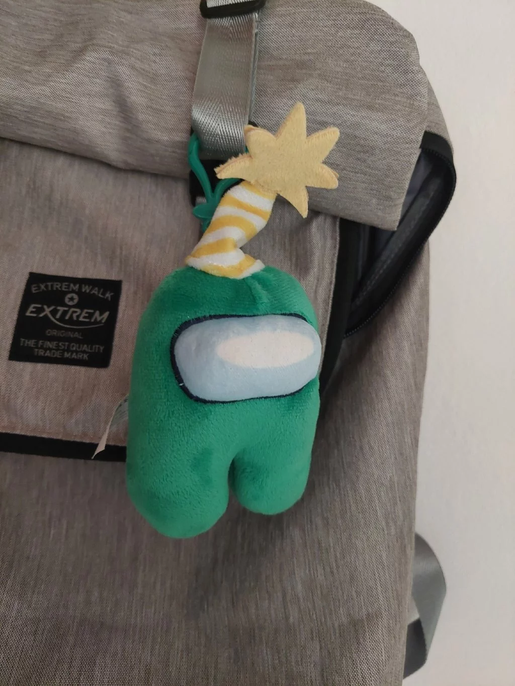 Kľúčenka Among Us - Plyšový Crewmate (zelený s čiapkou)