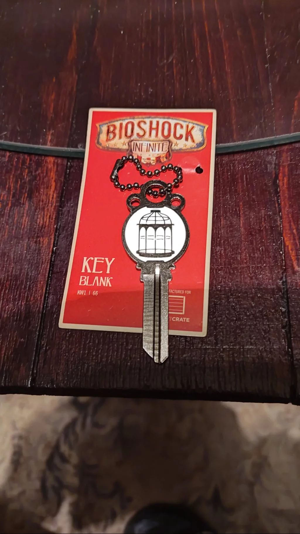 Krásná klíčenka s motivem ptáka nebo klece. Kdo hrál Bioshock Infinite, ví, o čem je řeč :) Sehnal jsem ho v black friday za 10,-, takže ideální stav. Jediné mínus je řetízek, na kterém je přívěšek přidělaný. Strašně snadno se otevírá a hrozí, že klíč ztratíte...