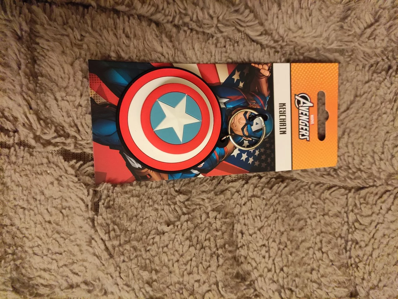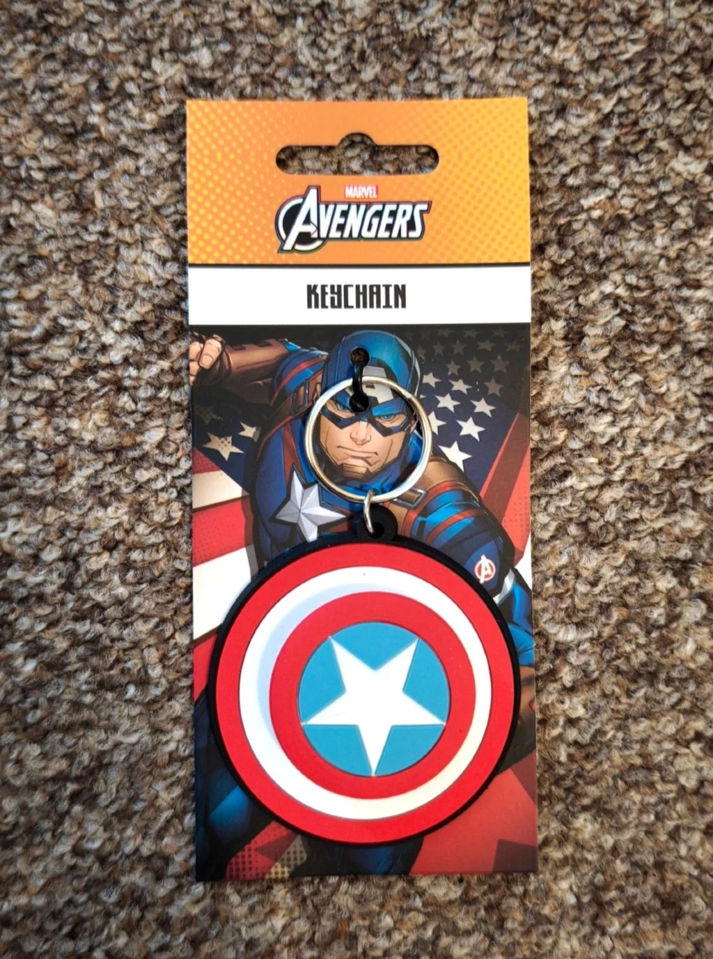 Tato gumová klíčenka s motivem Kapitána Ameriky ze série Avengers od Marvelu má velice dobré zpracování hlavně co se týče sytosti barev. Díky točícímu se středu může sloužit i jako taková "fidget spinner" hračka.