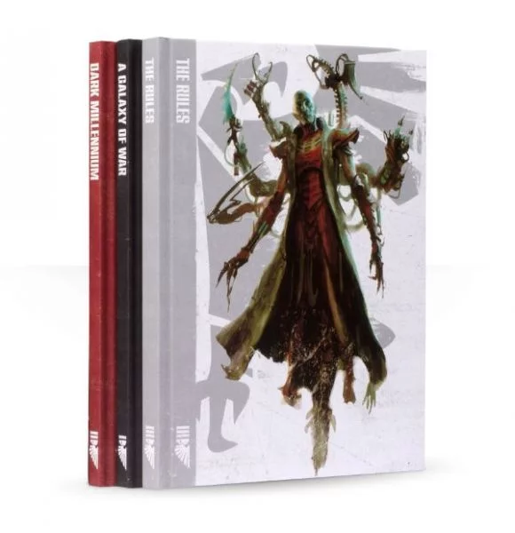 Trojica kníh v pevnej väzbe, ktoré obsahujú obrázky, príbehy a herné pravidlá. Knihy obsahujú podstatu sveta Warhammer 40 000, pričom každá z knih približuje inú stránku.