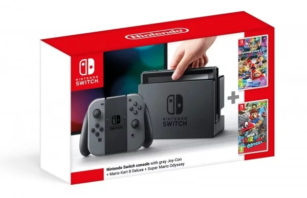 Konzola Nintendo Switch - Grey + Super Mario Odyssey + Mario Kart 8 Deluxe