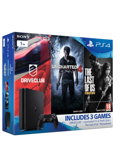PlayStation 4 Slim - herná konzola (1TB) + Uncharted 4 + Driveclub + The Last of Us