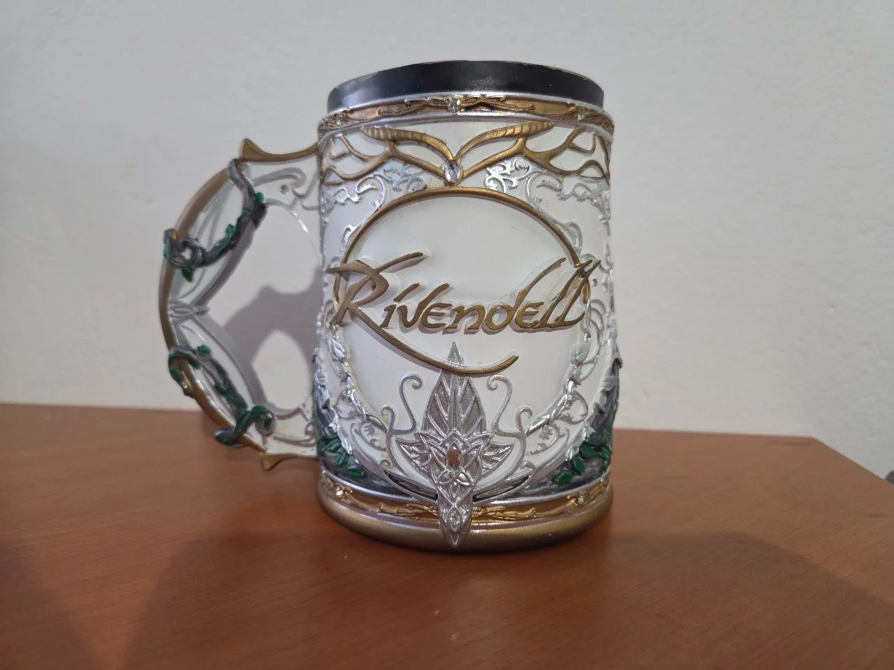 Oficiálne licencované a ručne maľované vedro z filmu Pán prsteňov je vyrobené z kvalitného materiálu s náplňou z nehrdzavejúcej ocele, aby sa z neho krásne pilo! Precízne tvarovanie je inšpirované Rivendellom vrátane vtipných detailov, ako je koruna Arwen a ďalšie.