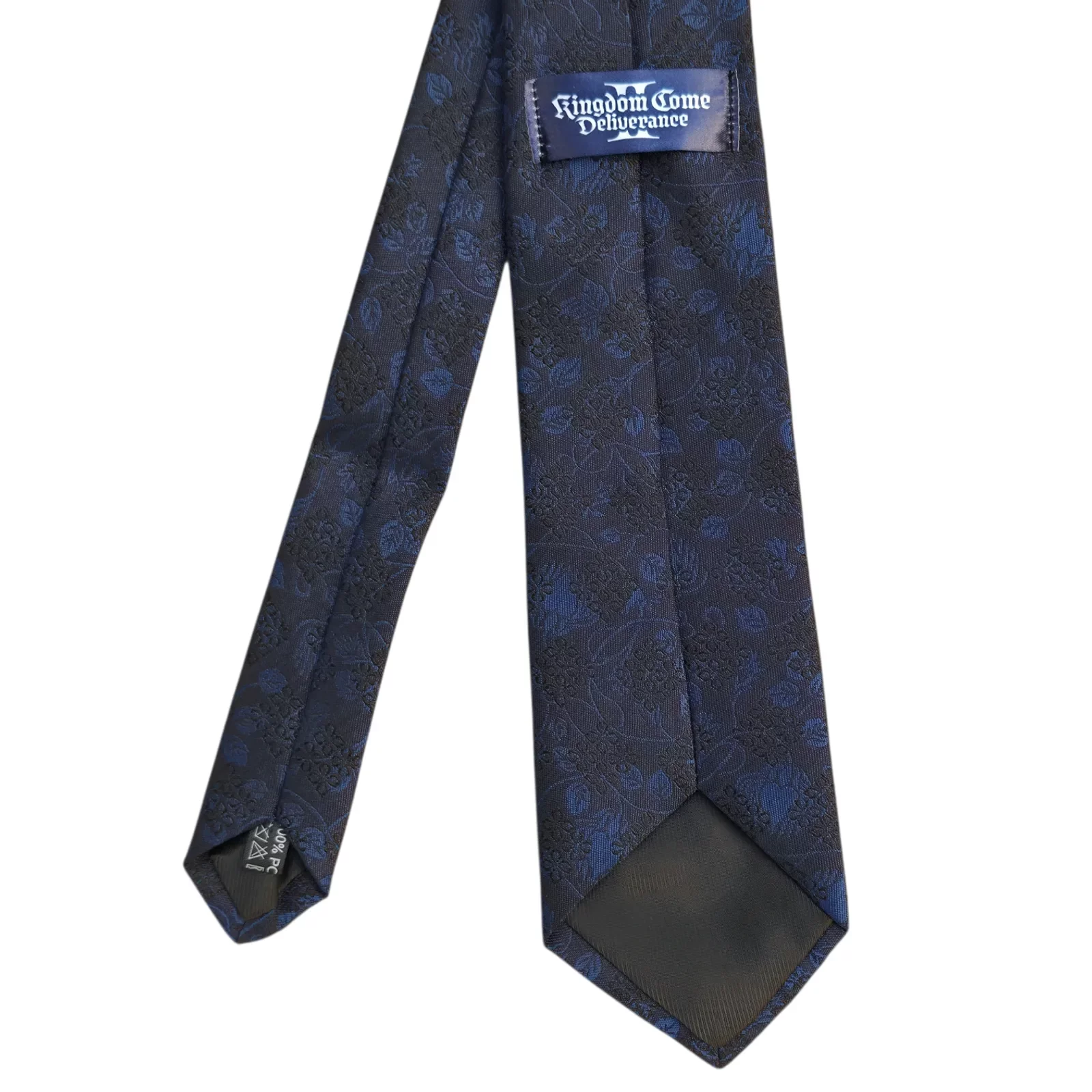 Tmavomodrá kravata s nádherným stredovekým vzorom a vyšitým logom Kingdom Come: Deliverance II.