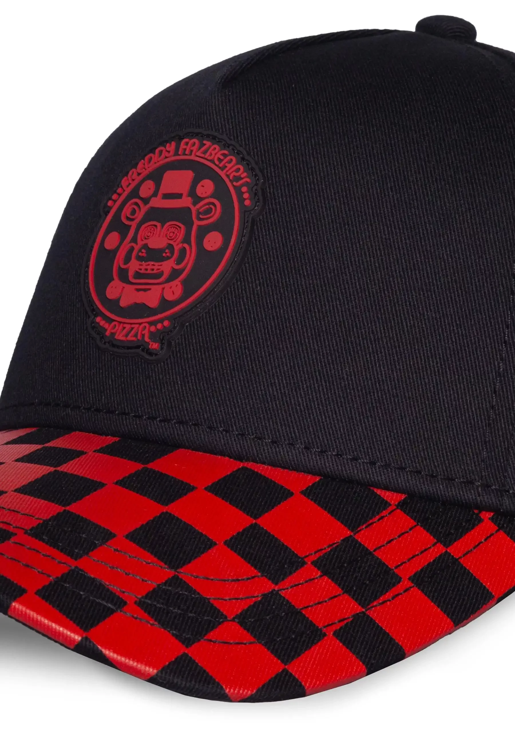 Štýlová čierna šiltovka inšpirovaná hororovou sériou Five Nights At Freddy's s výrazným červeným logom Freddy Fazbear's Pizza na prednej strane a kockovaným vzorom na šilte. Vďaka nastaviteľnému zapínaniu vzadu padne väčšine veľkostí. Ideálny doplnok pre fanúšikov, ktorí chcú ukázať svoju lásku k FNAF aj mimo hernej obrazovky.Veľkosť: nastaviteľná