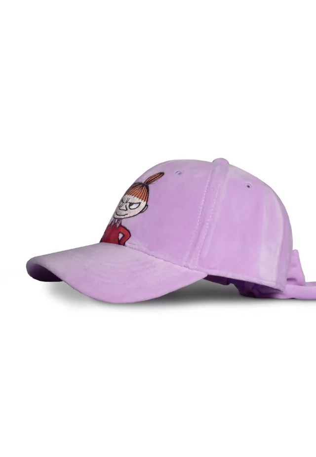 Štýlová pastelovo ružová čiapka inšpirovaná odvážnou Little My z Muminov. Prednú stranu zdobí ikonická póza tejto výraznej postavičky a zadnú časť dopĺňa rozkošná mašlička v štýle jej účesu. Ideálny doplnok pre fanúšikov Moomin aj milovníkov originálnych módnych kúskov.