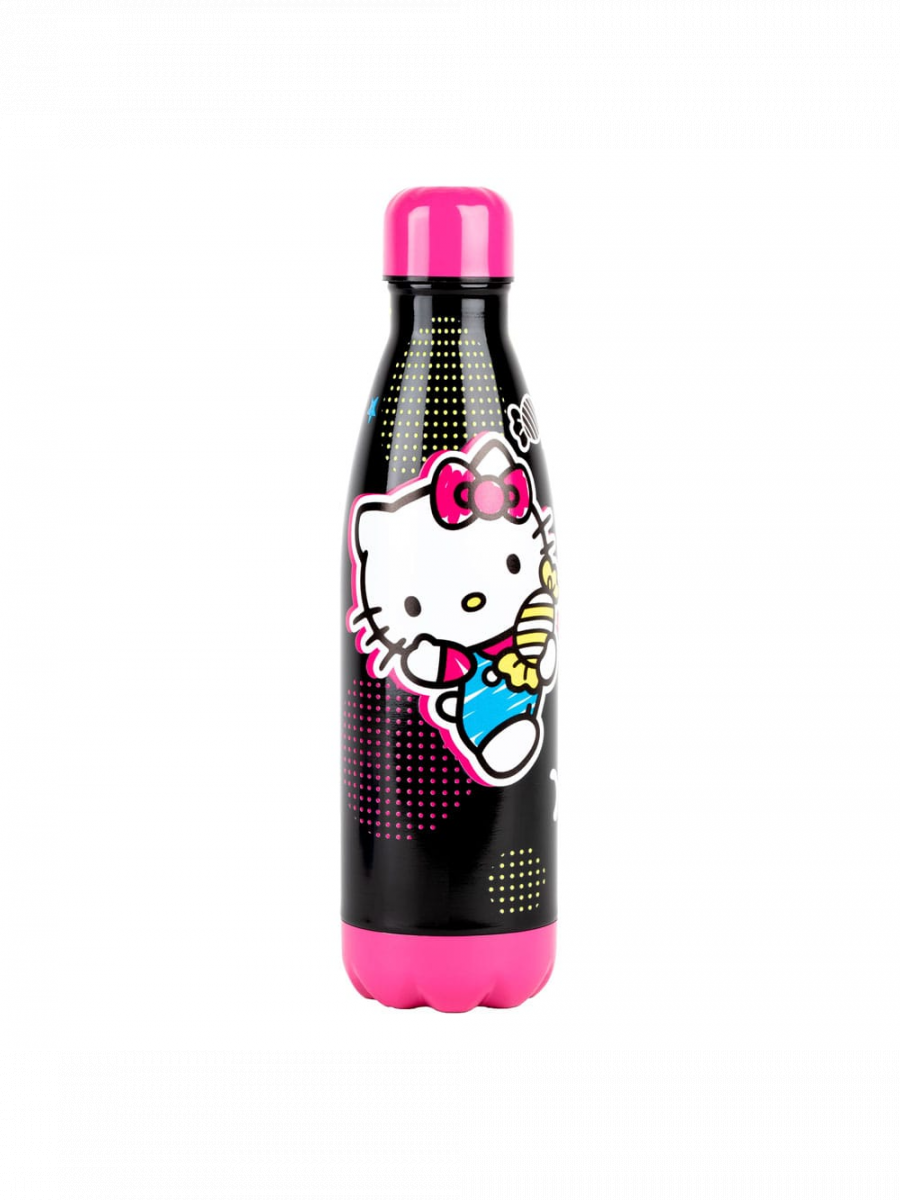 Čierna fľaša s hravým motívom Hello Kitty a sladkými detailmi zaujme na prvý pohľad. Ideálne do školy, práce aj na cesty, pre každého, kto chce mať pitie po ruke a zároveň dať najavo lásku k ikonickému štýlu Sanrio.Objem: 500 ml
