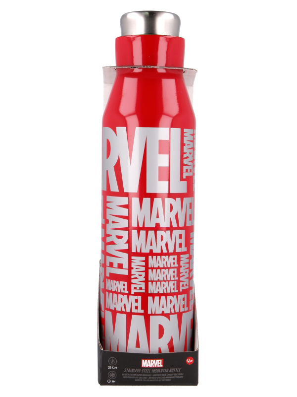 Kvalitná nerezová fľaša na udržanie Vašich studených/horúcich nápojov pri stálej teplote. Táto 580ml termoska je tematicky vztiahnutá ku komiksovej spoločnosti Marvel. Logo Marvelu je niekoľkokrát designovo umiestnené na červenom pozadí. Uzáver termosky sa vďaka vnútornému závitu skrutkuje dovnútra termosky.