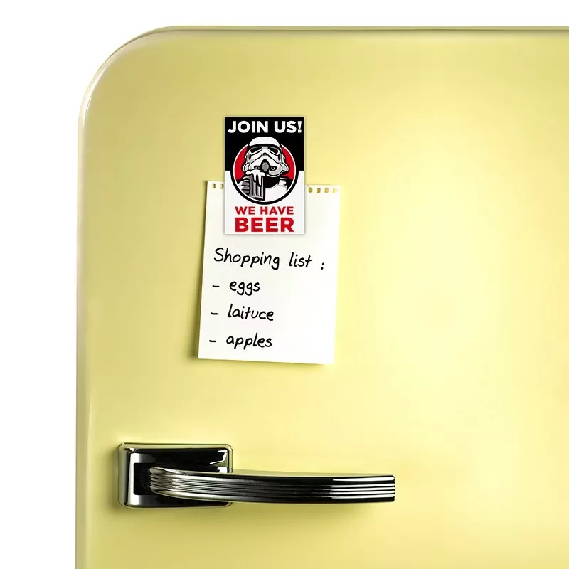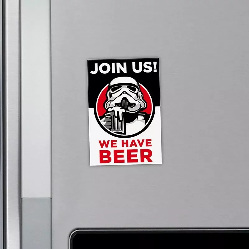 Plastová magnetka, ktorá iste poteší všetkých fanúšikov Hviezdnych vojen (Star Wars). Má podobu Stormtroopera s nápisom "Join us! We have beer.". Pod brnením vojakov Impéria je horúco, a treba sa osviežiť.Veľkosť: cca 5,5 x 8cm