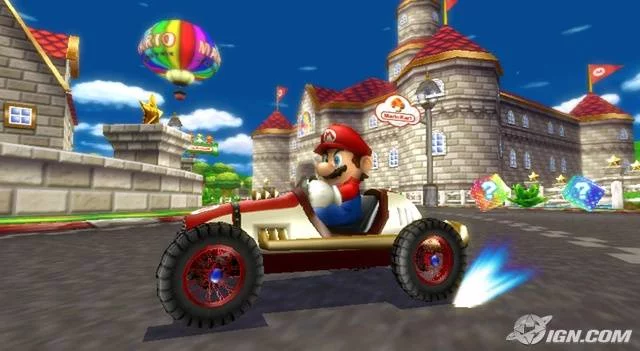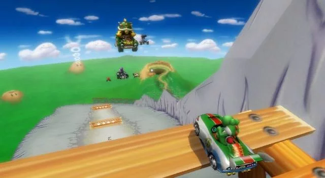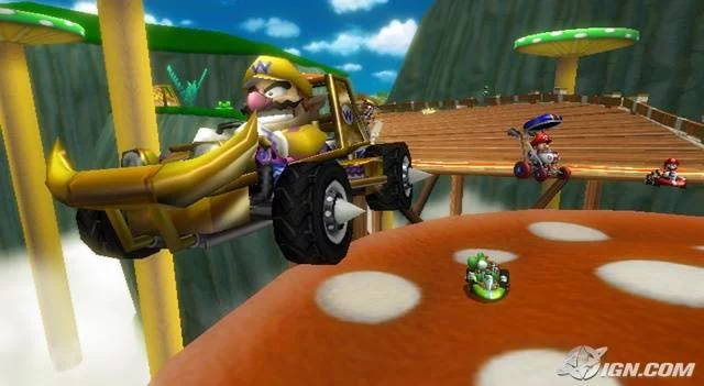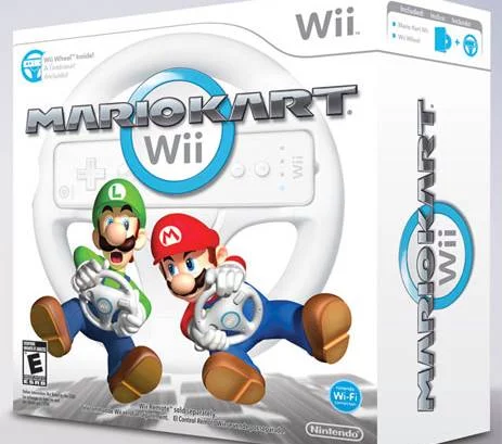 Balenie obsahuje tiež volant, do ktorého zasadíte svoj Wii ovládačOpäť sa stetávate s množstvom Nintendo postavičiek a v hre nájdete okrem nových tratí taktiež stávajúce z Mario Kart DS. Wii verzia taktiež pochopitelne ponúka lokálne i online multiplayer a rôzne rozšírenia v ovládání, kedy je možné napríklad pri preskakovaní prekážok robiť pomocou Wii mote rôzne akrobatické prvky.