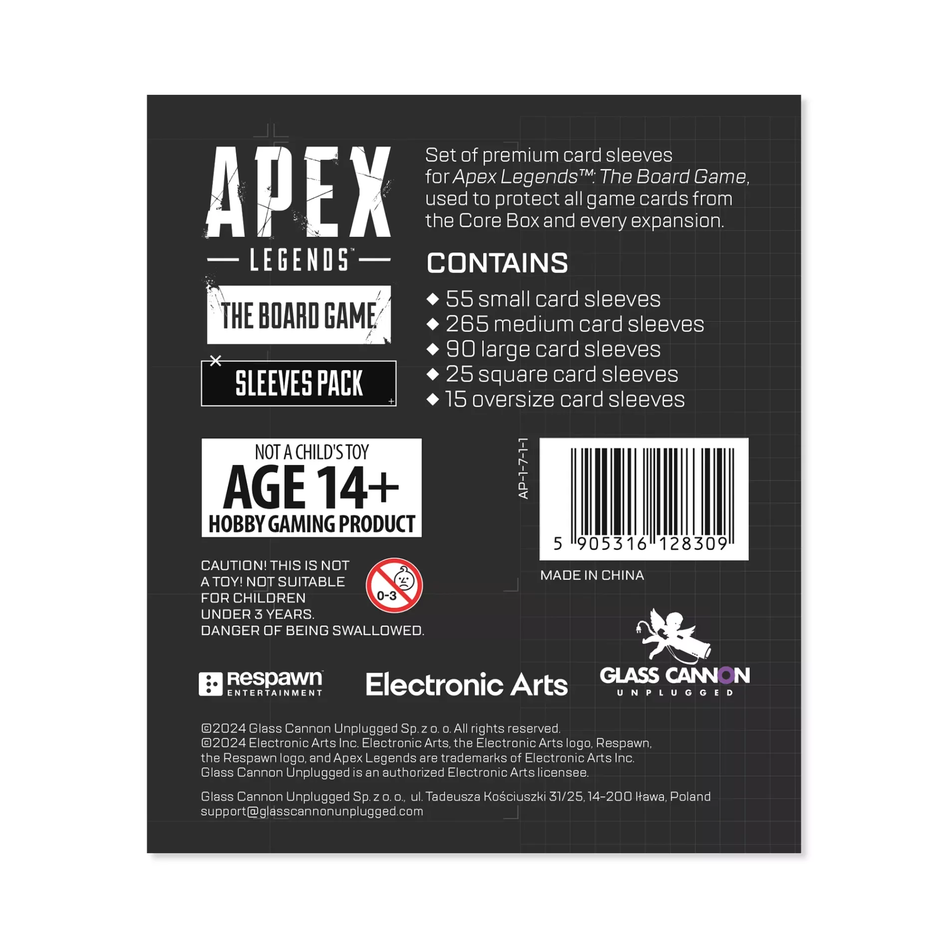 Sada prémiových obalov na karty pre stolovú hru Apex Legends, obsahujúca obaly, s pomocou ktorých môžete ochrániť karty zo základnej hry i všetkých rozšírení.