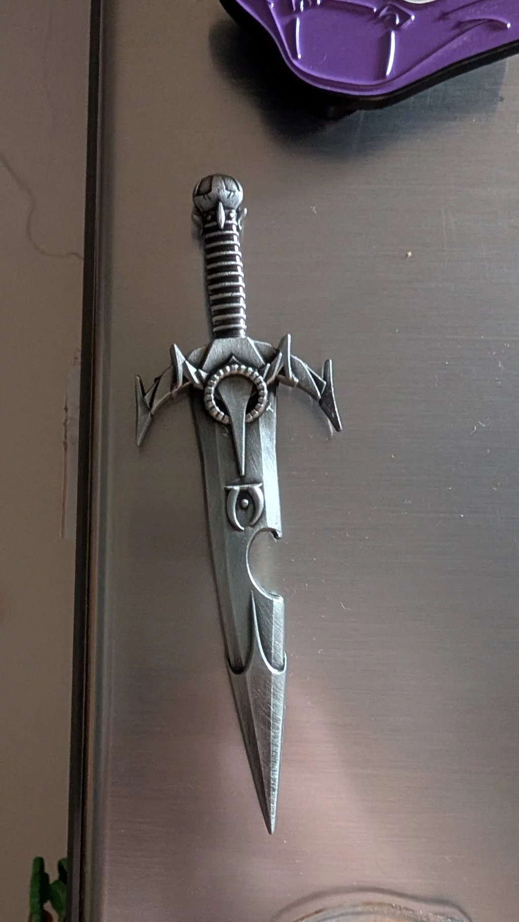 Táto oficiálne licencovaná replika vo forme otvárača na fľaše je vyrobená z kovu s povrchovou úpravou v antickom nikle a má výrez v čepeli určený na otváranie fliaš. Zadná strana je opatrená magnetom pre jednoduché uchytenie a otvárač má rozmery 120 × 40 mm.